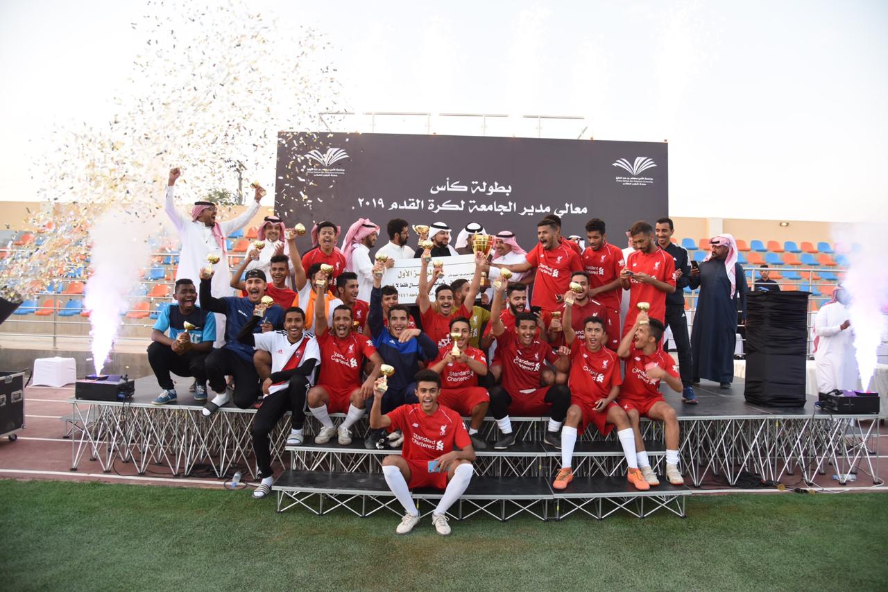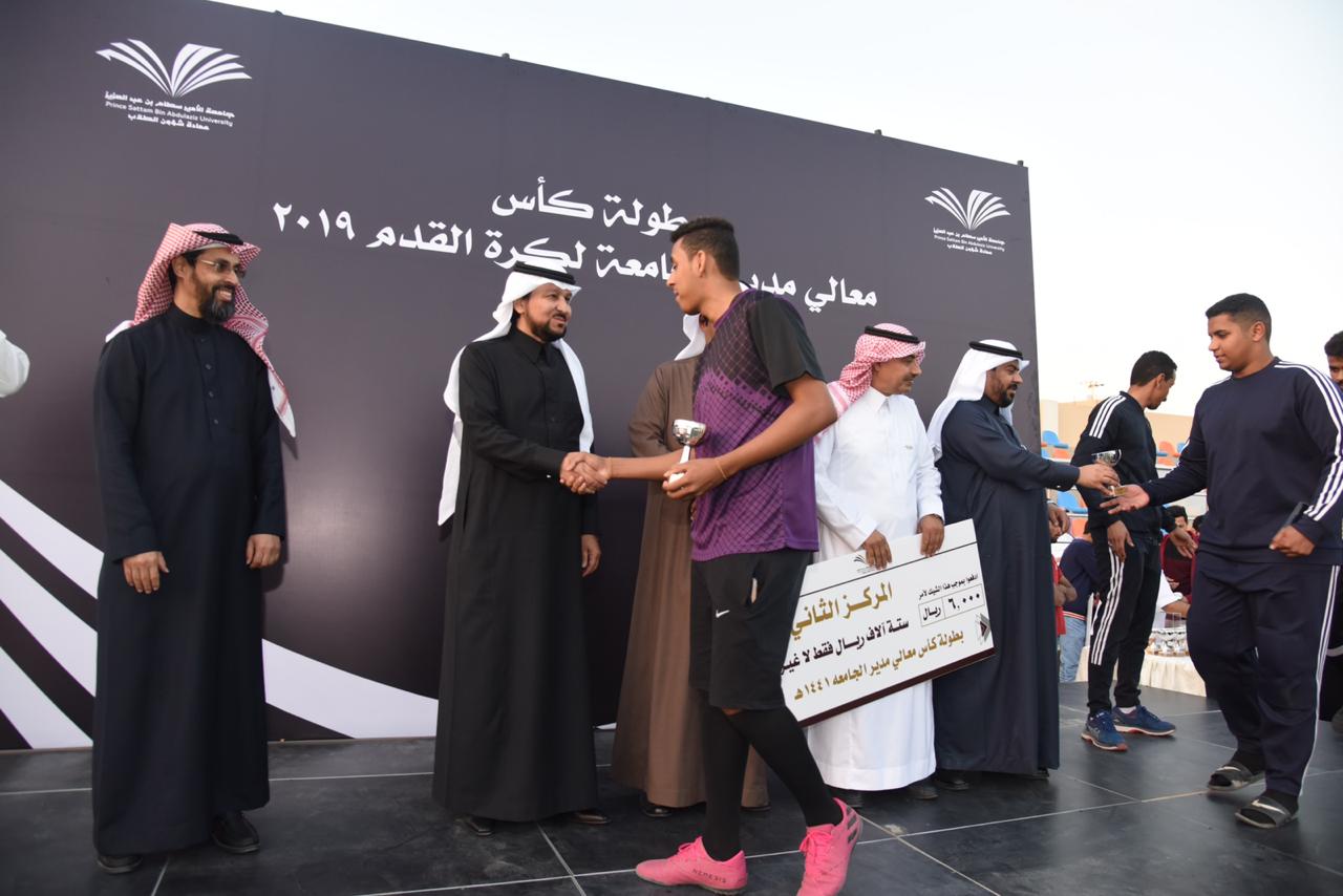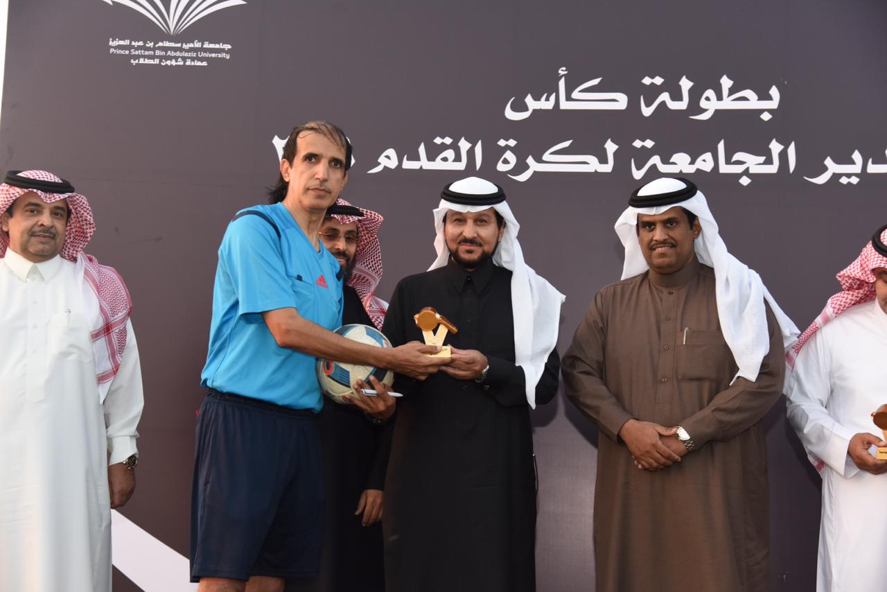 رعى معالي مدير جامعة الأمير سطام بن عبدالعزيز أ. د عبدالعزيز بن عبدالله الحامد المباراة النهائية لبطولة معالي مدير الجامعة لكرة القدم مساء يوم الأثنين28 /3/ 1441هـ والمقامة بنادي شركة الكهرباء بمحافظة الخرج , بحضور وكلاء الجامعة وعمداء الكليات والعمادات المساندة.