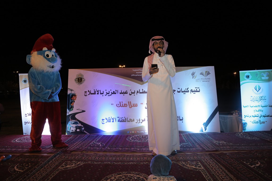 نظمت كليات الجامعة بالأفلاج مساء أمس بإشراف ومتابعة من المشرف على كليات الأفلاج الدكتور مسفر الكبيري، مبادرة سلامتك وذلك بالتعاون مع شعبة مرور الأفلاج.