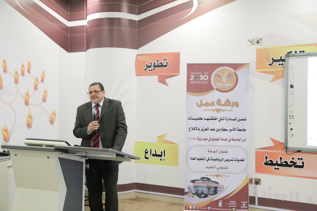 ضمن فعاليات المبادرة المجتمعية بكليات جامعة الأمير سطام بن عبدالعزيز في محافظة الأفلاج " دور الجامعة في خدمة المجتمع في ضوء رؤية المملكة ٢٠٣٩" نظم قسم الرياضيات بكلية العلوم والدراسات الإنسانية بالأفلاج ورشة عمل بعنوان " التحديات التي تواجه تعليم الرياضيات في التعليم العام".