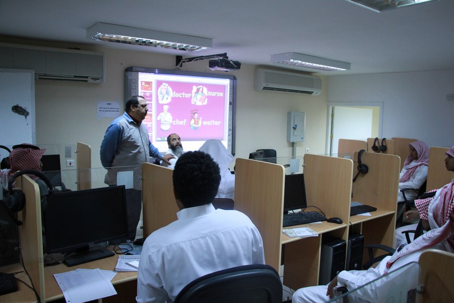 حيث يقوم أستاذة القسم باستخدام مناهج وطرق تدريسية تفاعلية حيث يتعلم الطالب اللغة الإنجليزية الدارجة والمستخدمة كل يوم لتمكنه من استخدامها في أماكن العمل والدراسة .
