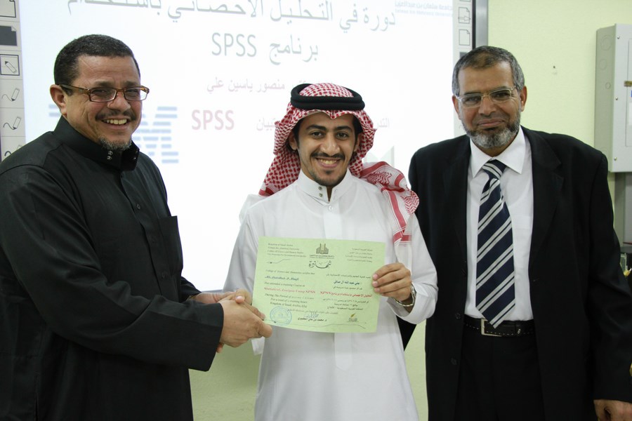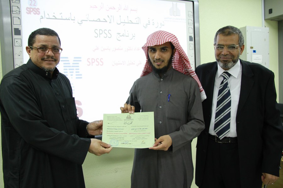 وقد شملت الدورة التعريف ببرنامج spss وأهميته في التحليل الإحصائي وتحليل الاستبانات والاستفادة منه في الأبحاث العلمية كما شملت التدريب العملي والنماذج التطبيقية على البرنامج.