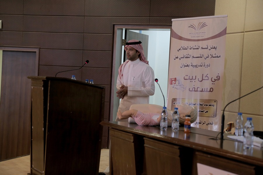 أقام قسم النشاط الطلابي ممثلاً بالقسم الثقافي بكليات الجامعة بالأفلاج اليوم دورة تدريبية لطلابها عن طريقة إنقاذ حياة المصابين والخطوات الأساسية للتعامل مع العديد من الحالات المصابة