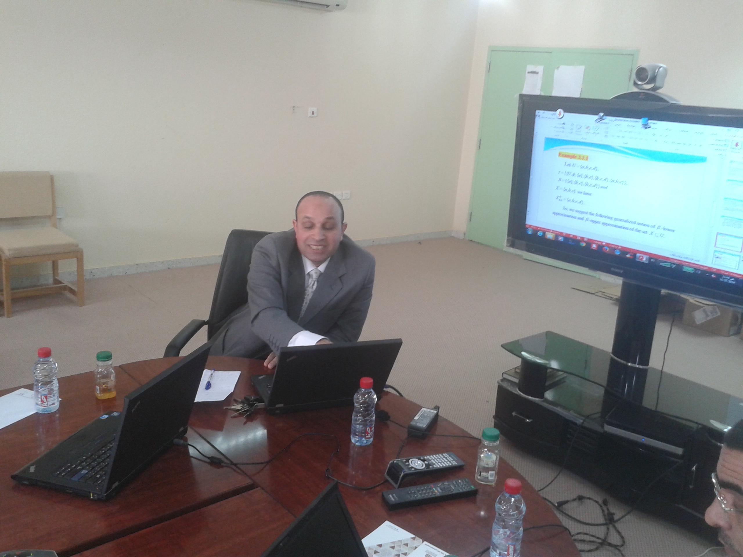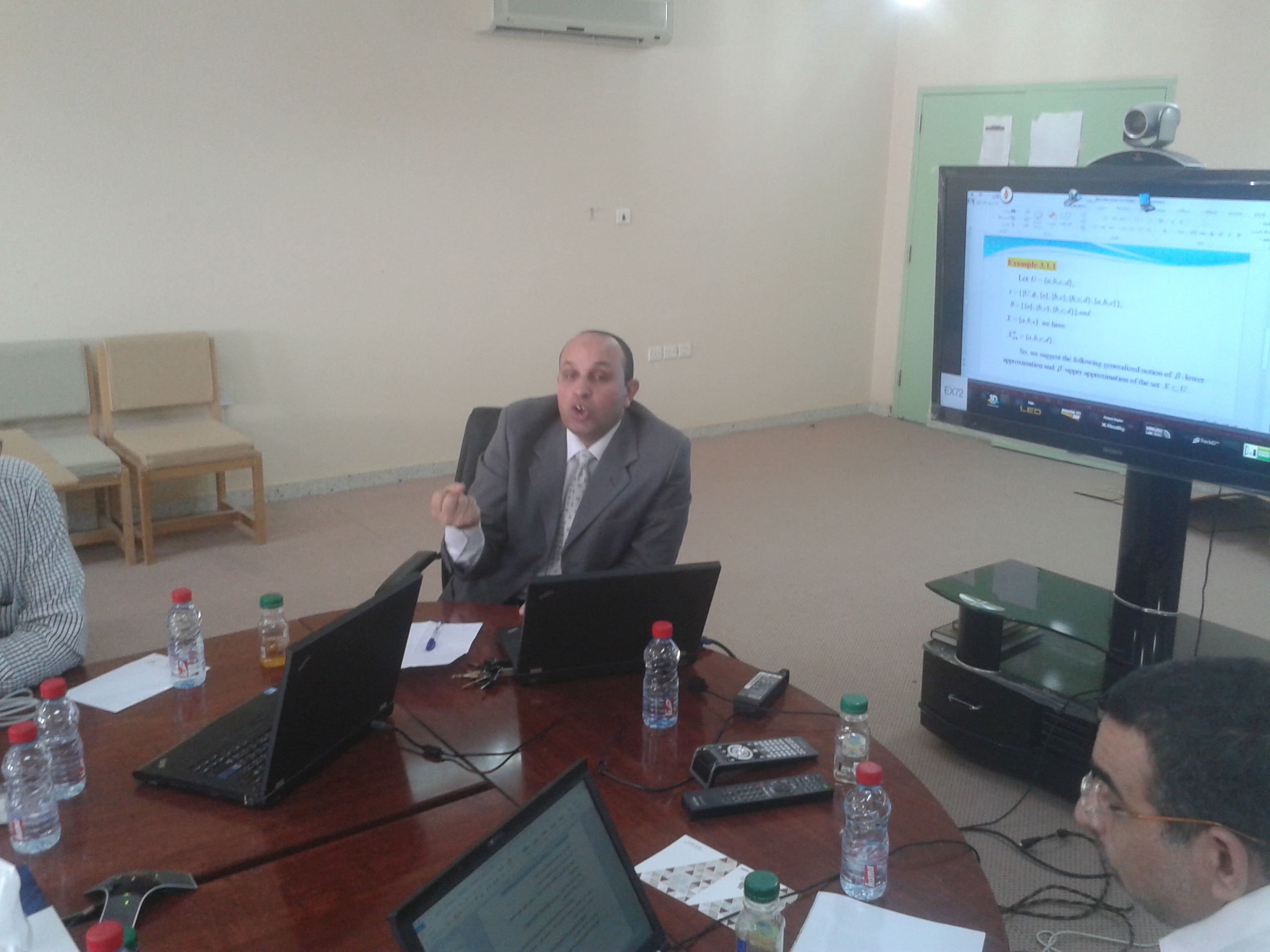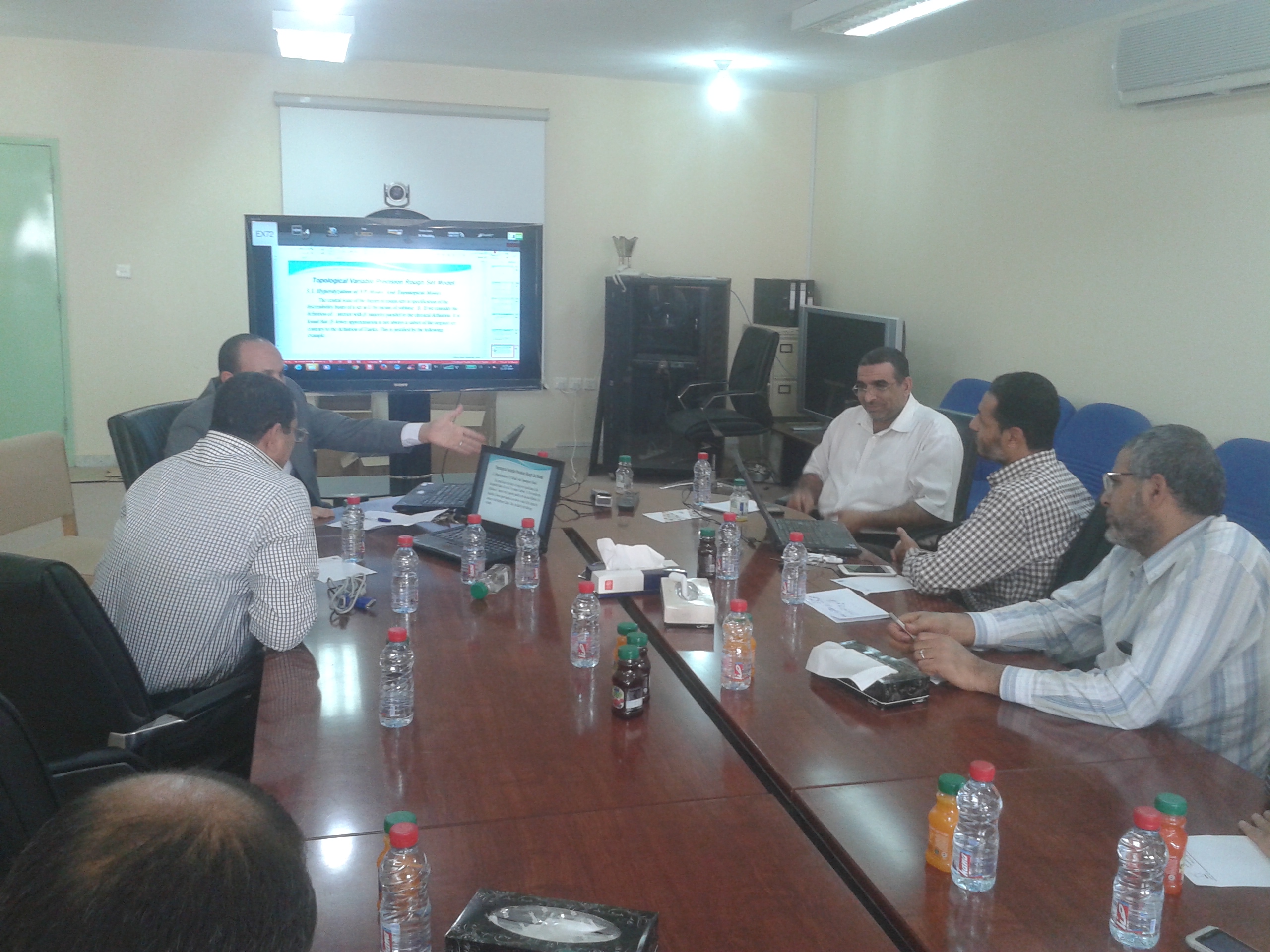 والذي ناقش فيه الدكتور عبد الفتاح عزّام عضو هيئة التدريس بالقسم ورقة بحثية بعنوان ( نموذج مجموعة الاستقراب بمعامل تحديد والتوبولوجي ) تناول فيها المفاهيم الأساسية لمصطلح التوبولوجي، ومجموعة الاستقراب ومعامل التحديد ثم قدم باستخدام التوبولوجي تعميمًا لمجموعة الاستقراب لمعامل تحديد ، كما قدم طرقًا جديدة لاختزال المتغيرات وقيمها.