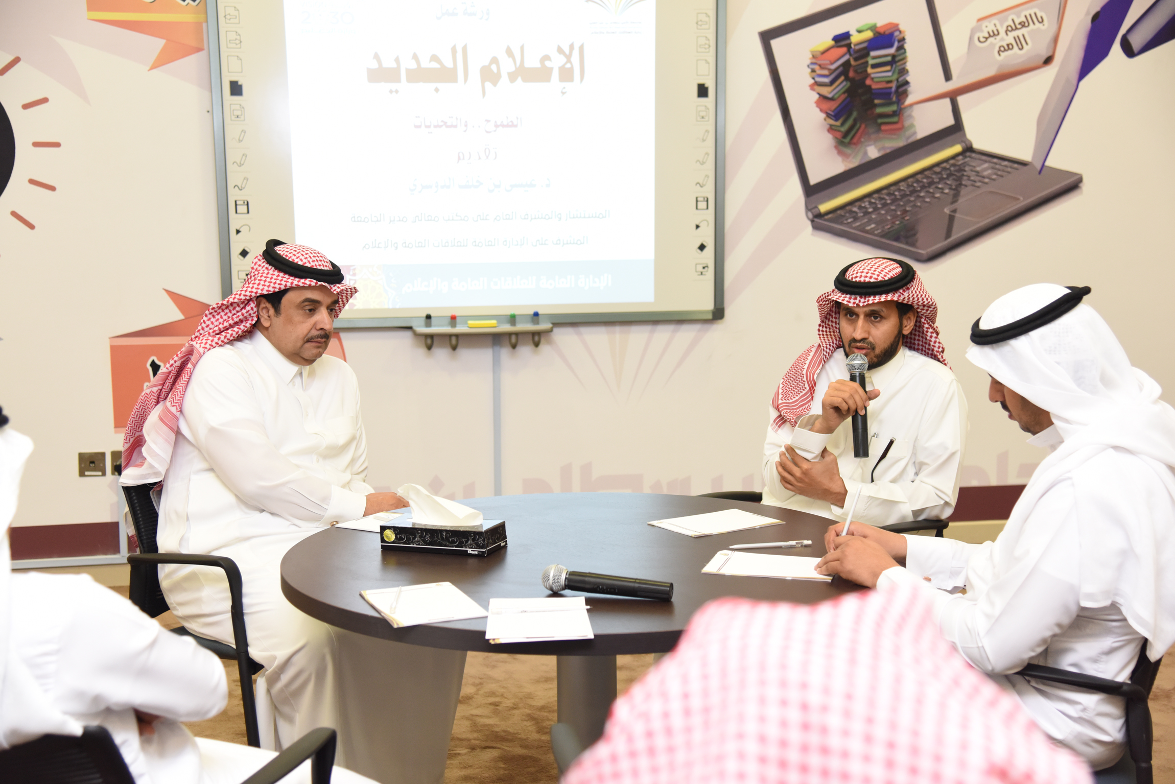 نظمت كليات جامعة الأمير سطام بن عبدالعزيز في الأفلاج، ورشة عمل عن "الإعلام الجديد بين الطموح والتحديات" استهدفت فيها عددًا من الإعلاميين والمهتمين بالإعلام بالمحافظة .