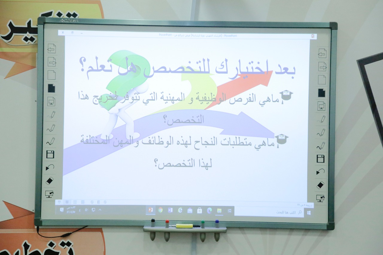 وتهدف الدورة التي قدمها المرشد المهني الدكتور منصور فتحي إلى أهمية الإرشاد المهني و الفرص الوظيفية و متطلبات كل برنامج تقدمه كليات الجامعة بالأفلاج و أهمية قياس الميول لكل طالب قبل اختيار تخصصه و الخدمات التي يقدمها الموقع من خلال استعراض متطلبات كل وظيفة مستعرضاً وظائف المستقبل المواكبة لرؤية المملكة 2030 و التخصصات المتاحة في جامعة الأمير سطام بن عبدالعزيز و الجامعات الأخرى بالمملكة .