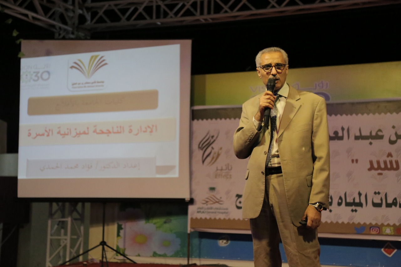 واختتمت فقرات المبادرة بدورة تدريبية بعنوان: "الإدارة الناجحة لميزانية الأسرة"، قدمها عضو هيئة التدريس بكليات الجامعة الدكتور فؤاد محمد الحمدي، للأهالي بمنتزه ترفيه المملكة؛ إذ تحدث فيها عن تخطيط وإدارة الدخل المالي للأسرة، وأهمية التخطيط المالي، وخطوات إعداد الميزانية المنزلية، وضبط الإيرادات والمصروفات للأسرة وكيف يتم حسابها.