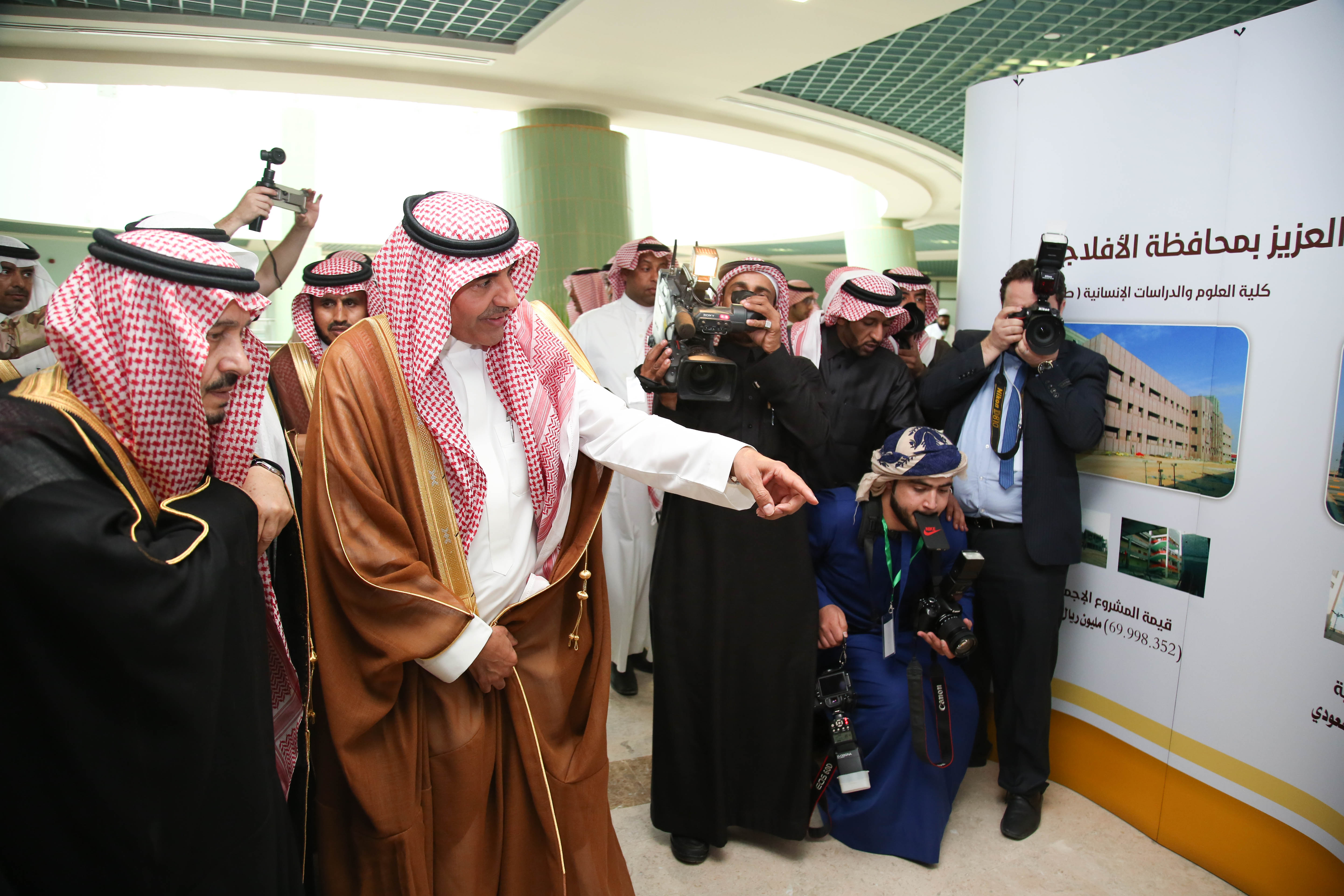 هذا، وقد انتقل أمير منطقة الرياض لمقر الحفل بمسرح الكلية، حيث كانت البداية بآيات عطرة من القرآن الكريم، ثم كلمة لأهالي المحافظة، وقصائد شعرية، وأوبريت إنشادي، ثم تفضل سمو الأمير بتدشين بعض المشاريع التي تخدم المحافظة، ومن ضمنها مشاريع كليات جامعة الأمير سطام بن عبد العزيز بالمحافظة؛ حيث دشن مشروع كلية المجتمع، والمواقع العامة، والتي بلغت تكلفته (296,191,417) مليون ريال، وإسكان أعضاء هيئة التدريس بقيمة (145,243,331) مليون ريال، ومشروع إنشاء كلية العلوم والدراسات الإنسانية (طالبات) والتي بلغت قيمته (69,998,352) مليون ريال.