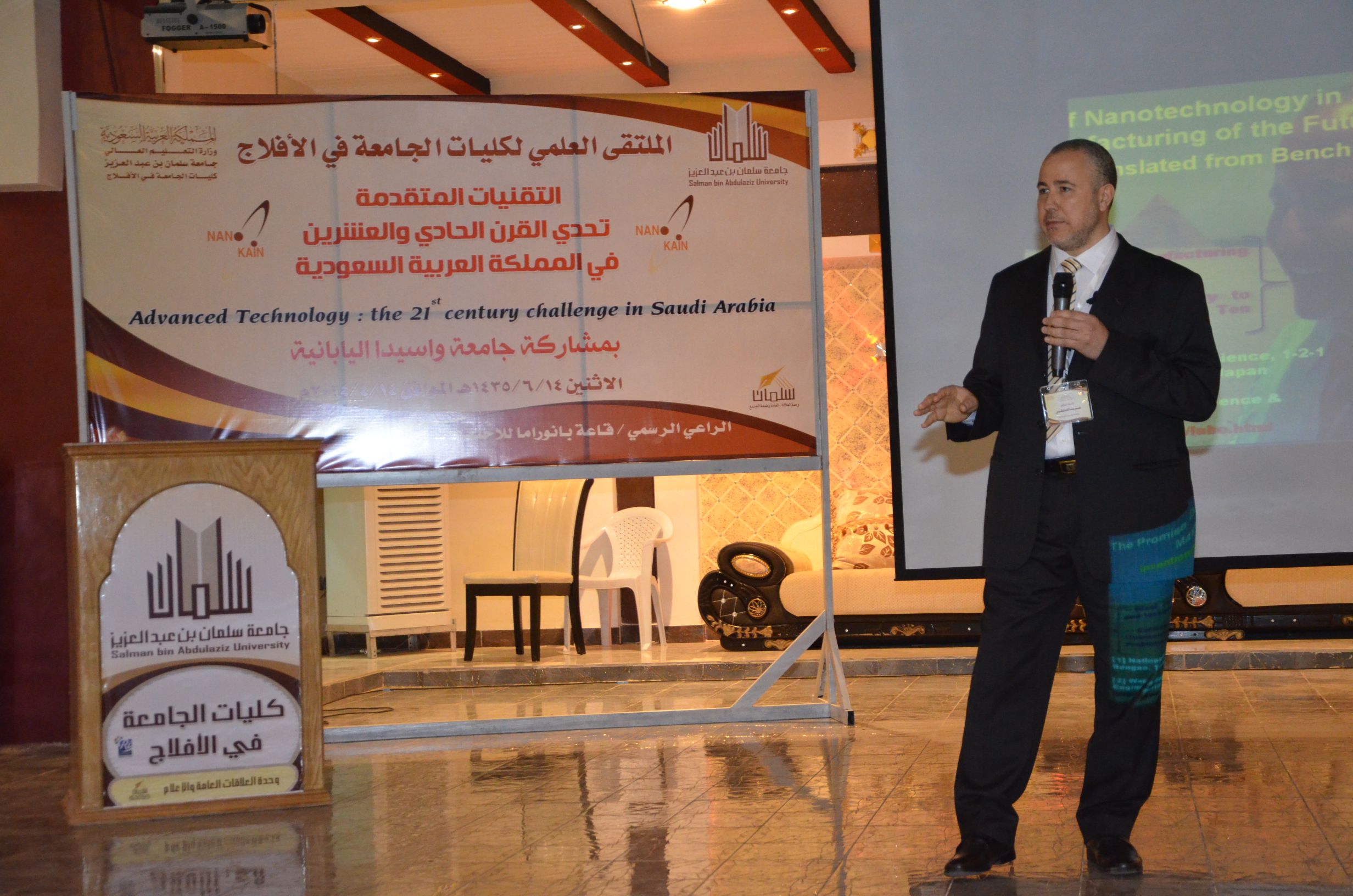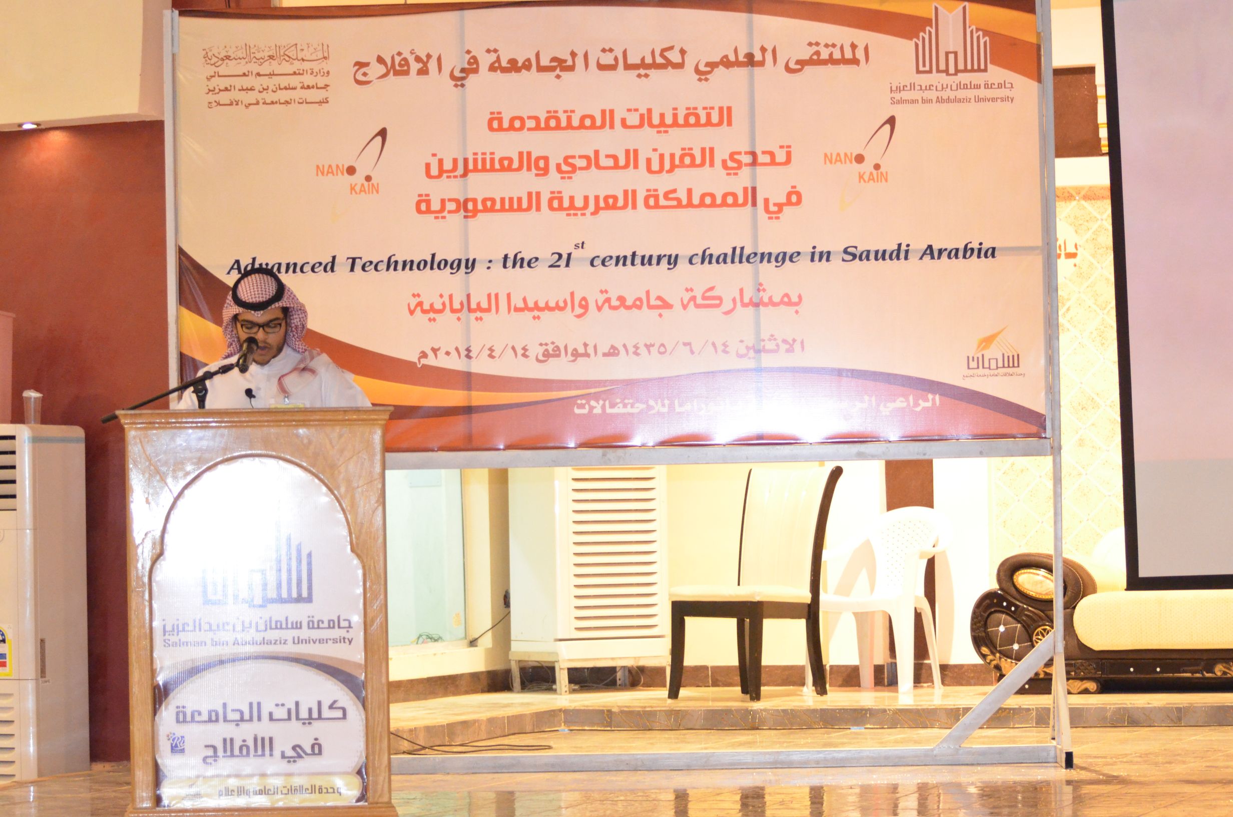 د. أحمد النجمي ، الأفلاج : اختتمت كليات جامعة سلمان بن عبدالعزيز في الأفلاج فعاليات الملتقى العلمي للتقنيات المتقدمة تحدي القرن الحادي والعشرين في المملكة العربية السعودية بمشاركة جامعة واسيدا اليابانية وبرعاية من معالي مدير الجامعة د. عبد الرحمن بن محمد العاصمي .