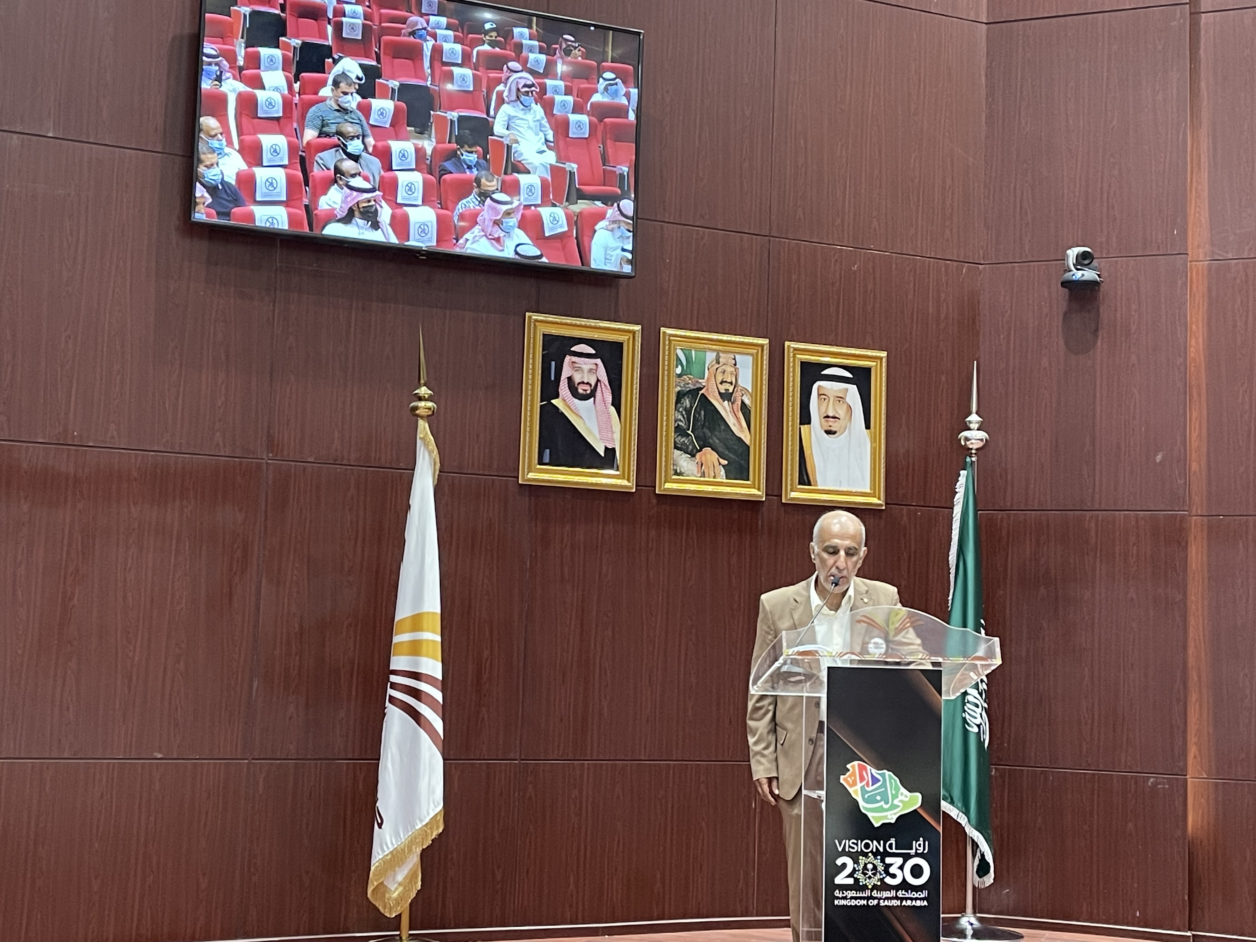 وتضمن الحفل كلمة لعميد كلية الآداب والعلوم الدكتور عمر المطيري ، رفع من خلالها التهاني والتبريكات بهذه المناسبة لمقام خادم الحرمين الشريفين الملك سلمان بن عبدالعزيز وولي عهده الأمين الأمير محمد بن سلمان بن عبدالعزيز– حفظهما الله- كما هنأ المرابطين في الحد الجنوبي والمواطنين ، مؤكداً على أهمية هذه المناسبة الوطنية التي تحمل ذكرى التأسيس و التوحيد على يدي مرسي دعائم هذه البلاد وباني نهضتها الملك عبد العزيز بن عبد الرحمن ـ طيب الله ثراه ـ بعد ملحمة من البطولات تلاها الأمن والأمان والاستقرار والخير العميم والتقدم والرخاء والازدهار ليتمم تلك المسيرة العطرة أبنائه الملوك ممن ساروا على نهجه فكان كل منهم خير خلف لخير سلف.