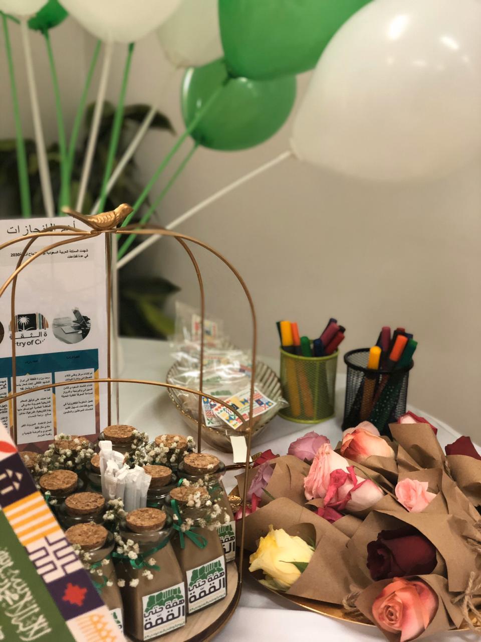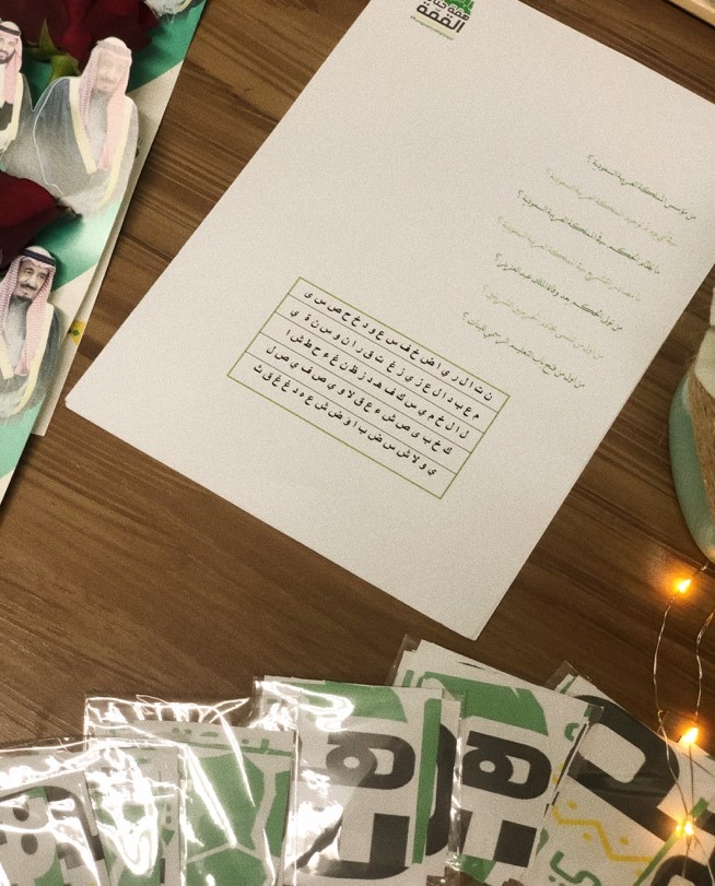 كما كانت مشاركة المجلس الاستشاري الطلابي بلوحة جداریة تھدف لإتاحة الفرصة للطالبات للتعبیر عن مشاعر الولاء و الإنتماء و الحب للوطن، كما وضعت توزیعات بذور نباتیة بھدف تعزیز وتشجیع المساھمة في تنمیة وخلق بیئة أفضل للوطن.