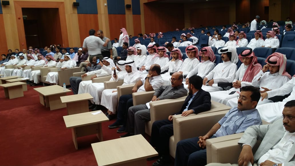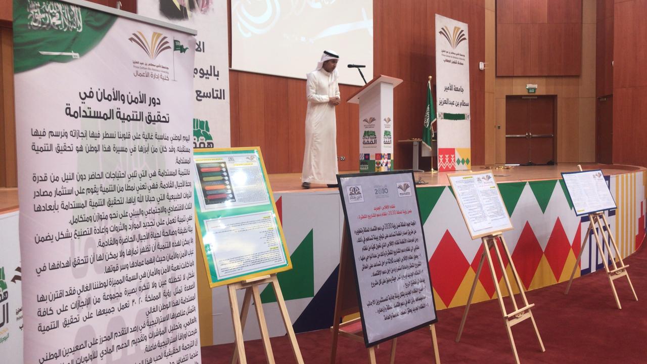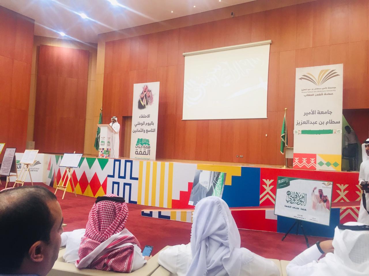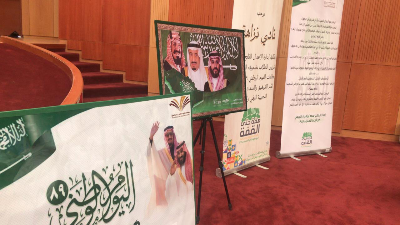 تحت رعاية سعادة عميد كلية إدارة الأعمال الدكتور / أحمد بن سهيل عجينة، نظمت لجنة الانشطة الطلابية بكلية إدارة الأعمال بالخرج احتفالا باليوم الوطني للمملكة التاسع والثمانون بحضور ومشاركة وكلاء الكلية ومشرفي الأقسام الأكاديمية وأعضاء هيئة التدريس والطلاب حيث تضمن الحفل عدداً من الفقرات الرائعة والمميزة، وقد بدأ الحفل بتلاوة آيات من القراءان الكريم ، ثم عزف النشيد الوطني للمملكة ، وبعدها ألقى سعادة عميد الكلية الدكتور/ أحمد بن سهيل عجينة كلمته التي هنأ فيها قيادة المملكة والشعب السعودي باليوم الوطني ، كما قدم التبريكات لمقام خادم الحرمين الشريفين حفظه الله وسمو و لي عهده الأمين ومعالي مدير جامعة الأمير سطام بن عبدالعزيز، كما استعرض سعادته تاريخ المملكة وإنجازاتها على مستوى كافة القطاعات ، وأكد الدكتور / عجينه في كلمته على أهمية تفعيل دورنا وتوحيد صفوفنا وتوجيه جهودنا في بناء هذا الوطن المعطاء الذي جعله الله دوحة غناء تنعم بالرخاء وترفل بالرفاهية والاستقرار، ثم توالت فقرات الحفل التي تنوعت ما بين إلقاء الشعر والأفلام الوثائقية والأناشيد الوطنية التي تؤرخ وتوثق تأسيس المملكة على يد الوالد المؤسس الملك عبدالعزيز بن عبدالرحمن آل سعود طيب الله ثراه ، ثم تلى ذلك قيام الطلاب بتقديم العرضة السعودية والتي لاقت استحساناً وتفاعلاً وقبولاً من الحاضرين.