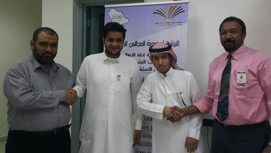 نظمت لجنة الانشطة الطلابية انتخابات المجلس الطلابي الاستشاري ، حيث يأتي تشكيل المجلس إيمانا بأهمية الدور الذي تؤديه المجالس الطلابية في الحياة الجامعية حيث يهدف المجلس الطلابي بكلية إدارة الأعمال بالخرج إلى تعميق التواصل والحوار ونقل جزء من الإدارة للطلاب مع منحهم الفرصة في التعبير عن أنفسهم عبر القنوات الرسمية , مع اعتبارها وجه من أوجه المشاركة الإيجابية ، و يأتي هذا الأمر في إطار حرص الكلية على مشاركة المجلس في التخطيط والتنسيق والإعداد والتنظيم للفعاليات الجامعية في جوانبها المختلفة ، وبعد عرض المهام والمسئوليات والواجبات الخاصة بالمجلس وتوضيح آليات التواصل مع الطلاب من قبل سعادة رئيس لجنة الأنشطة الطلابية د / طارق الخطيب ، أجريت الانتخابات بين أحد عشر طالباً مرشحاً من طلاب الكلية لمنصب الرئيس ونائبه والتي انتهت بفوز الطالب عماد عادل العلي بمنصب رئيس المجلس والطالب محمد فهد العتيبي نائباً لرئيس المجلس الطلابي الاستشاري .