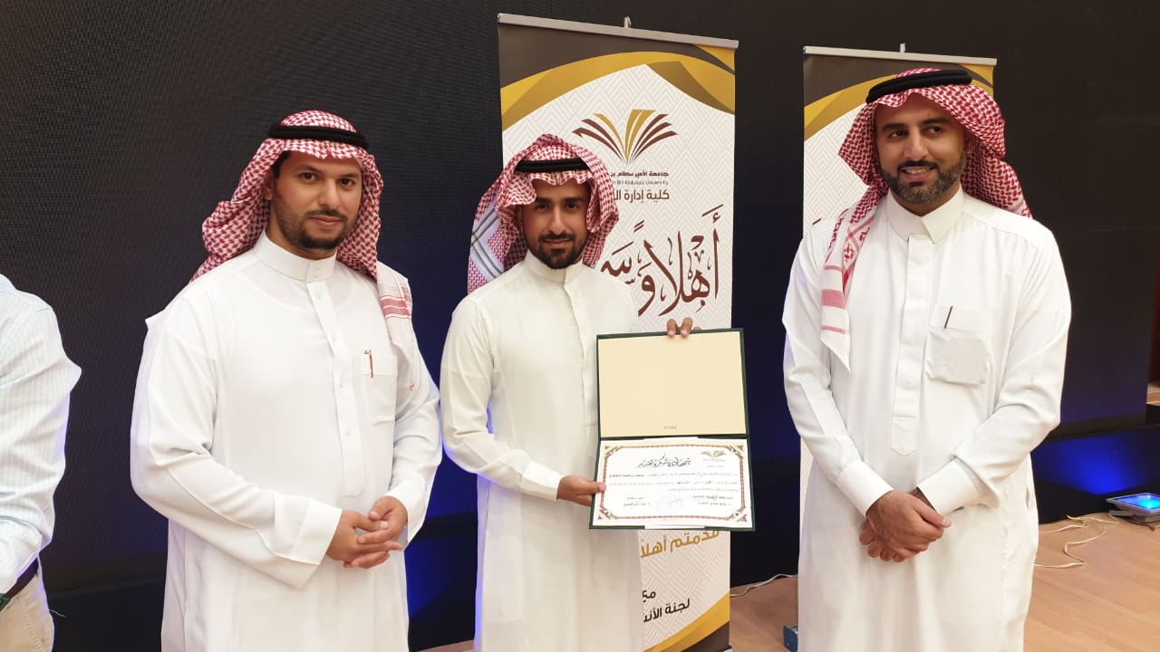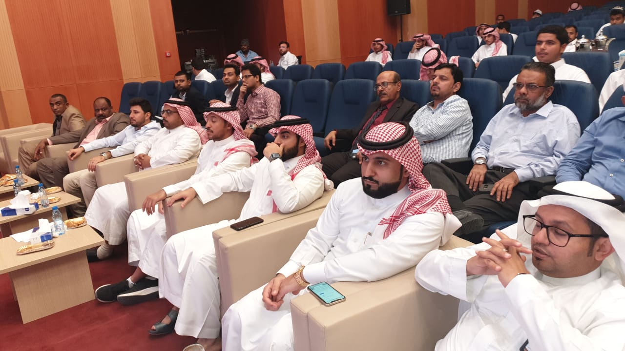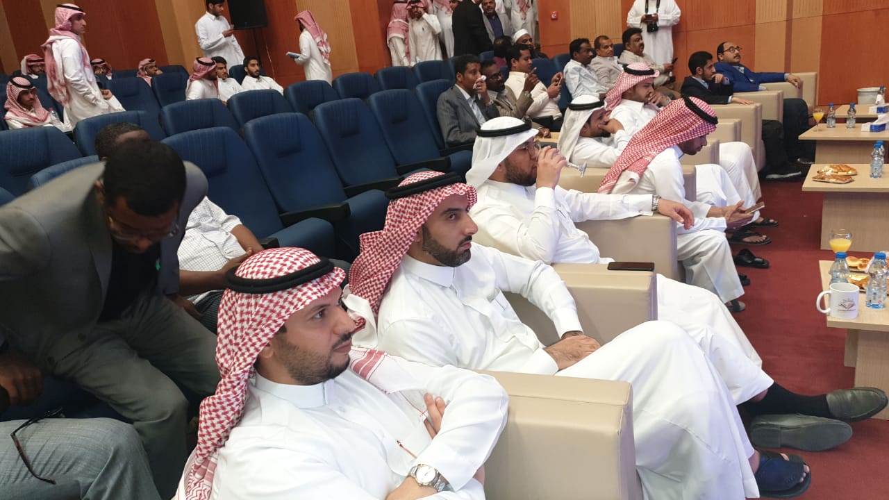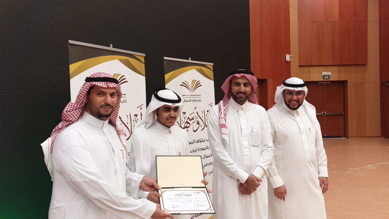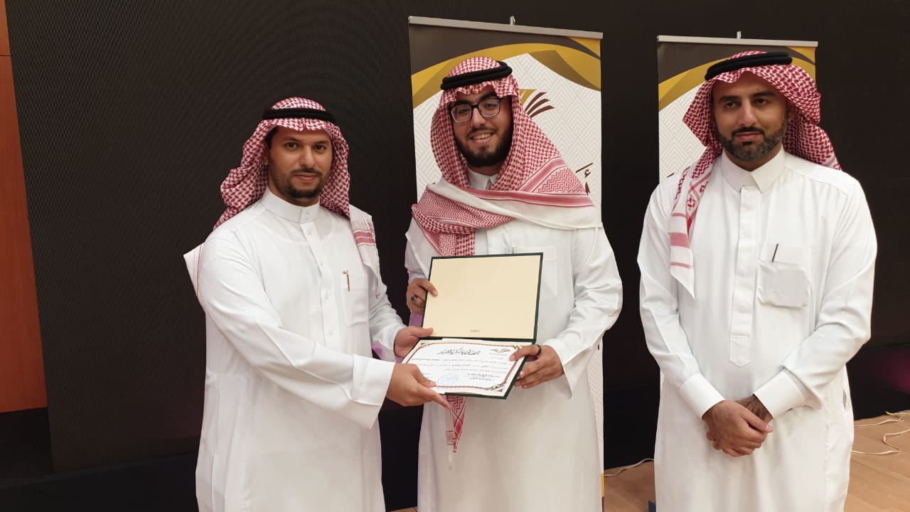 حيث بدأ الحفل بعزف النشيد الوطني وتلاوة آيات من الذكر الحكيم تلاها كلمة عميد الكلية والتي قدمها نيابة عن سعادته الدكتور فيصل الخليفي وكيل الكلية للتطوير والجودة والتي رحب فيها بالحضور وشكر عمادة شؤون الطلاب على دعمها المتواصل للكلية ثم وجه شكره للجنة الأنشطة الطلابية بالكلية على الجهد الذي تقدمه, كما وجه سعادته شكره الخاص لطلاب الكلية خاصة المشاركين منهم داعياً الجميع إلى ضرورة المشاركة والاستفادة من كل ما تقدمه العمادة من خدمات ودعم طلابي، ثم قدم طلاب الكلية مشاركاتهم في مختلف محاور المسابقة والتي لاقت قبولاً وأستحساناً من الجميع, وفي نهاية الحفل تم توزيع الجوائز على الطلاب المشاركين وتم توجيه الشكر لهم على الحضور والمشاركة.