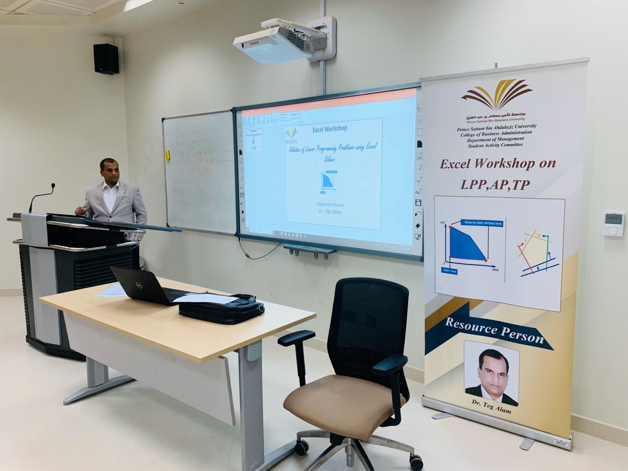 تواصلاً لأنشطة لجنة الأنشطة الطلابية بكلية إدارة الاعمال، نظمت اللجنة بالتعاون مع قسم الإدارة بالكلية بتاريخ الاربعاء 23/10/2019م دورة تدريبية فى البرمجية الخطية، حيث أدار الدورة الدكتور/ تيج علام تيج. هدفت الدورة الى تعريف الطلاب بكيفية استخدام برنامج إكسل في التعامل مع مشكلات البرمجية الخطية، حيث قام الدكتور تيج بعرض مجموعة من الأمثلة الخاصة بعملية حل مشكلات البرمجية الخطية باستخدام اكسل مع عرض اهم الخطوات اللازمة للحل.