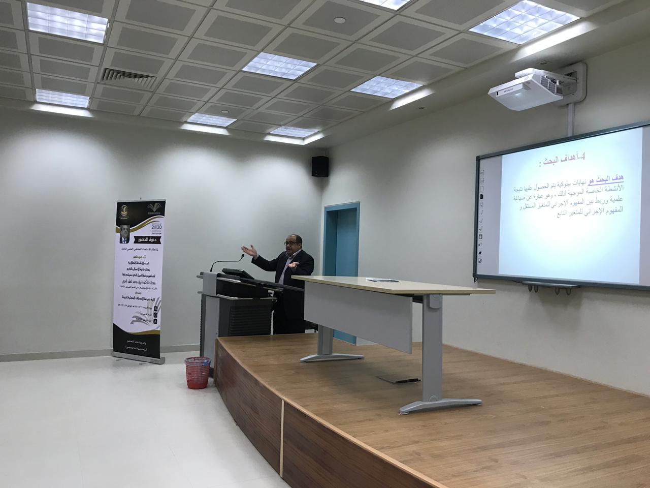 في إطار الاستعداد للملتقى العلمي الثالث الذي تنظمه عمادة شؤون الطلاب بجامعة الأمير سطام بن عبدالعزيز للعام الجامعي 1439/1440 هـ واستمرارا لفعاليات الكلية، نظمت لجنة الأنشطة الطلابية بتاريخ الأربعاء 17/5/1440هـ الموافق 23/1/2019م ورشة عمل بعنوان "آلية صياغة الأهداف البحثية الجيدة"، قدم لها سعادة الدكتور / نبيل محمد لطف الحزمي الأستاذ المشارك والمشرف على قسم التسويق، وقد تناولت الورشة المكونات الرئيسة للبحث العلمي مع التركيز على كيفية الصياغة الأهداف البحثية الجيدة، وكذلك عرض موجز لخصائص الهدف الجيد. كما تناول الدكتور / الحزمي الضوابط الفنية التي يجب مراعاتها عند صياغة الأهداف البحثية بما يدعم الطلاب بالخروج ببحث علمي جيد.