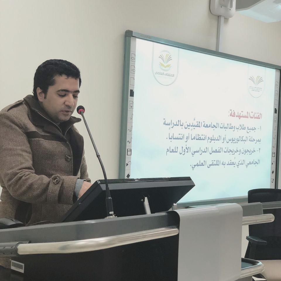 نظم قسم القانون بكلية إدارة الأعمال بالخرج محاضرة تعريفية استهدفت تعريف طلاب الكلية بالملتقى العلمي الثالث حيث قدم سعادة الدكتور / شادي محمد حجازي الأستاذ المساعد بقسم القانون بكلية إدارة الأعمال عرضاً تقديمياً للتعريف بالملتقى العلمي الثالث ومحاوره المختلفة وذلك يوم الخميس 21/03/1440 هـ الموافق 29/11/2018 م, وقد تناول سعادته بالتفصيل الأهداف الرئيسية للملتقى، وفئاته المستهدفة. ثم تناول المحاور الرئيسية للملتقى ومسارته المختلفة، وقد تم توضيح طريقة المشاركة في الملتقى للطلاب, وقد حث الدكتور شادي المشاركين في المحاضرة على الاستفادة من الدعم الذي تقدمه الكلية والجامعة للطلاب في هذا الإطار، كما قدم سعادة الدكتور عبدالباسط أبو العز الأستاذ المساعد بقسم القانون وعضو لجنة الأنشطة الطلابية بكلية إدارة الأعمال عرضاً تقديمياً للتعريف بالملتقى ومحاوره المختلفة وذلك يوم الخميس 29/11/2018 م وقد تناول العرض الأهداف الرئيسية للملتقى ، وتحديد الفئات المستهدفة له. ثم تناول سعادته بالشرح المحاور الرئيسية للملتقي ومسارته المختلفة، كما بين سعادته أيضاً للطلاب آلية المشاركة في الملتقى، واختتمت الفعالية بالإجابة على تساؤلات الطلاب واستفساراتهم.