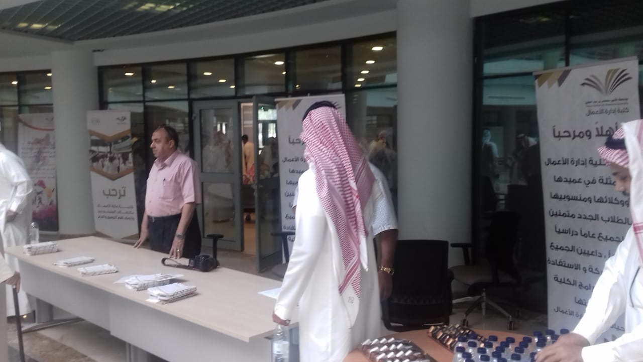 تحت رعاية سعادة عميد كلية إدارة الأعمال بالخرج، استقبلت الكلية طلابها فى بداية العام الدراسي الجديد 1440/1441هـ، وقد كان في استقبال الطلاب عميد الكلية الدكتور/ أحمد بن سهيل عجينة، و وكيل الكلية للشؤون التعليمية والأكاديمية الدكتور/ عواد العنزي، و وكيل الكلية للتطوير والجودة الدكتور/ فيصل الخليفي، ولجنة الأنشطة الطلابية برئاسة الدكتور/ طارق توفيق الخطيب، وذلك بحضور عدد من رؤساء الأقسام و أعضاء هيئة التدريس ومدير الإدارة الأستاذ / بندر الشاهين وعدد من المحاضرين والمعيدين. تضمن الإستقبال شرحاً مبسطاً للطلاب خاصة الجدد حول الكلية وخططها الدراسية، وبرامجها ألأكاديمية، وأنشطتها الطلابية ، وأقسامها المختلفة، والجداول الدراسية، وأماكن القاعات، وعمليات التسجيل والحذف والإضافة، وغيرها من العمليات.