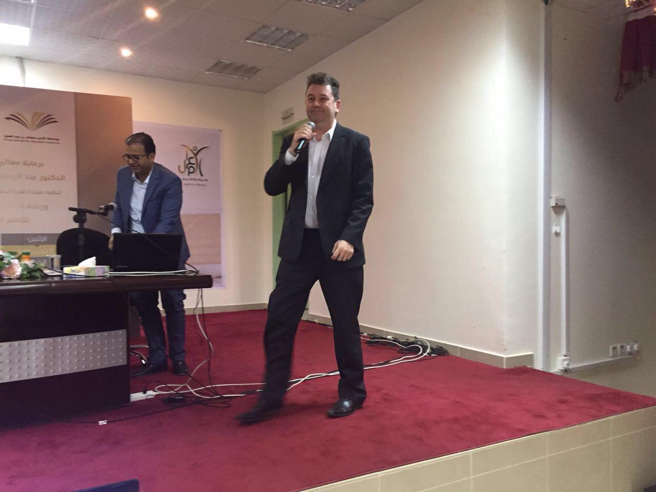 بعد ذلك قدم أ.د. ستيفن ويلر خبير نظم التعلم الإلكتروني وتقنياته في جامعة بليموث البريطانية محاضرة، تحدث فيها عن أهمية التعلم الإلكتروني، وبيَّن أبرز التحديات التي تواجهه، مقدِّمًا الحلول لتجاوز هذه التحديات والعقبات. ثم توالت الأسئلة والمداخلات والمناقشات من الحضور.