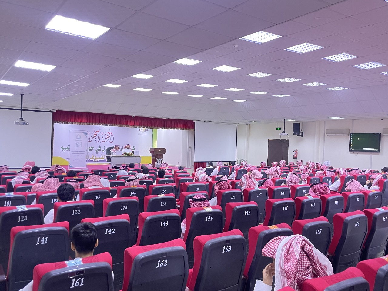 وقد تحدث في اللقاء عن واجبات الطالب الجامعي، مشيرًا إلى أهمية الجد والاجتهاد في بداية المرحلة الجامعية، ومبيّنًا أثر ذلك في المعدل التراكمي، وأكّد أن المعدّل التراكمي يُعدّ مؤشرًا على مستوى الطالب التحصيلي في مستويات دراسته الجامعية، داعيًا الطلاب إلى العناية والاهتمام به من بداية المرحلة.