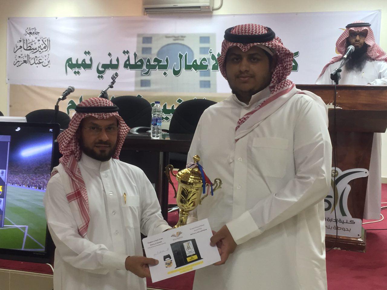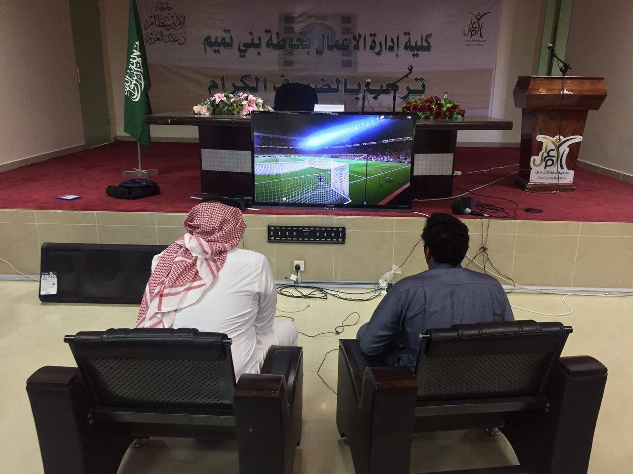 بحضور عميد كلية إدارة الأعمال في حوطة بني تميم د. خالد العتيبي، ووكيل الكلية للشؤون التعليمية والأكاديمية د. إبراهيم الداود، ومدير إدارة الكلية أ. إبراهيم آل مهنا أقيمت المباراة النهائية في دوري (البلاي ستيشن)، بين الطالبين: محمد بن عبدالله الخريّف، وسعود بن زيد النويشر، وذلك في يوم الأربعاء ١٤٣٨/٣/٢٩، في مسرح الكلية.