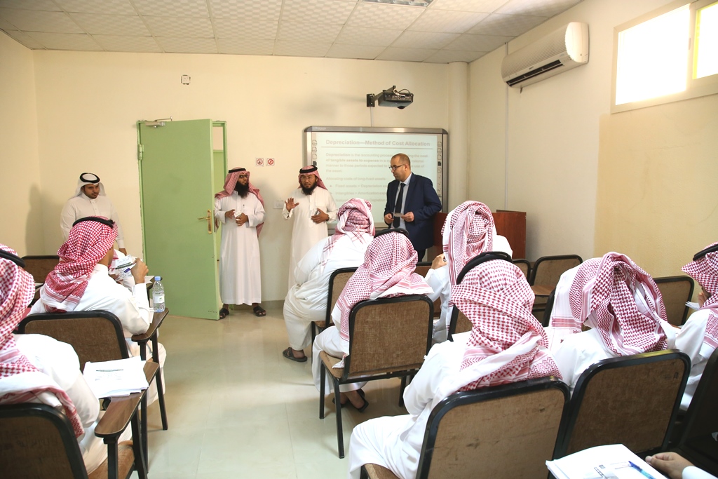 background:white;direction:rtl;unicode-bidi:embed">ضمن الحملة الإعلامية التعريفية بالملتقى العلمي الثاني والتي تقيمها عمادة شؤون الطلاب ممثلة في اللجنة العليا للمؤتمر ، استضافت كلية إدارة الأعمال بمحافظة حوطة بني تميم فريق العمل بأمانة الملتقى العلمي بقيادة أمين الملتقى سعادة الدكتور / عمر بن محمد دين ، يوم الأثنين الموافق 2/3/1439هـ.