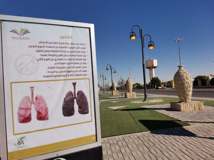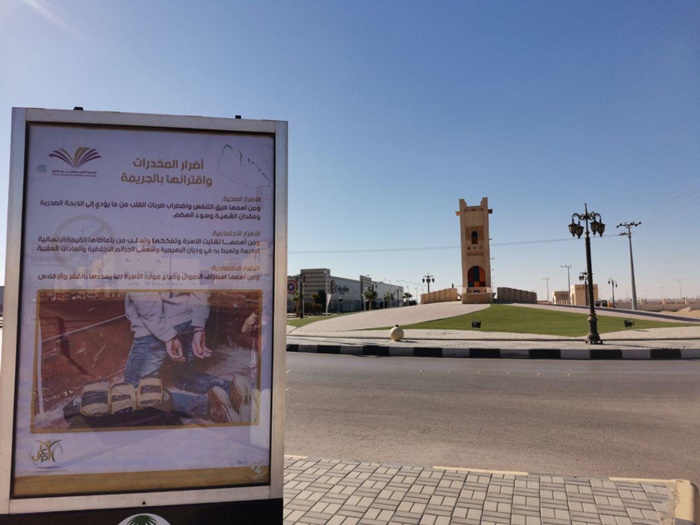 وقد تضمنت الحملة لوحات إرشادية في الشوارع العامة والأماكن البارزة بالمحافظة، تحوي بيانًا لأسباب الوقوع في التدخين والمخدرات، وإشارة إلى النتائج المترتبة على ذلك، وتحذيرًا من أضرارهما النفسية والصحية والأسرية والاجتماعية.
