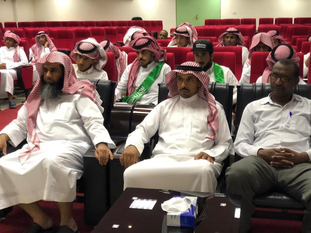 وقد تضمّن البرنامج كلمة لعميد الكلية د. إبراهيم الداود، التي أكّد فيها دور المواطن في بناء الوطن، مُخاطِبًا الطلابَ ومُذكّرًا إياهم بما يبذل لهم الوطن في سبيل تعليمهم، وداعيًا إياهم إلى رد الجميل إليه بخدمته، والإسهام في بنائه وازدهاره. وأشار أيضًا إلى مظاهر المواطَنة الحقيقية، محذّرًا من بعض الممارسات التي يُسيء بها بعض الشباب إلى أهلهم ومجتمعهم ووطنهم؛ بدعوى احتفائهم باليوم الوطني. وقد أشاد د. الداود بعدد من طلاب الكلية المشاركين في جوالة الجامعة لخدمة الزوار المعتمرين في شهر رمضان المبارك، وخدمة الحجاج، مشيرًا إلى أن هذا مظهر من مظاهر خدمة الوطن، وجانب من جوانب العمل في رقيّه وازدهاره.