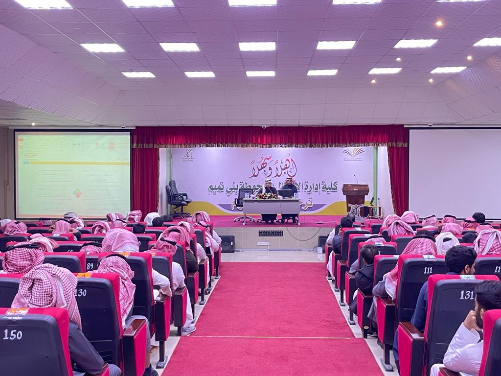 التقى عميد كلية إدارة الأعمال في حوطة بني تميم المكلّف د. بدر بن عبدالعزيز التميمي بالطلاب المستجدين، يوم الثلاثاء ١٤٤٤/٥/١٩هـ. وفي مستهلّ اللقاء رحّب د. التميمي بالطلاب، وهنّأهم بالقبول في الكلية، وبالفصل الجامعي الجديد، راجيًا لهم التوفيق والسداد.