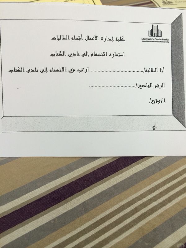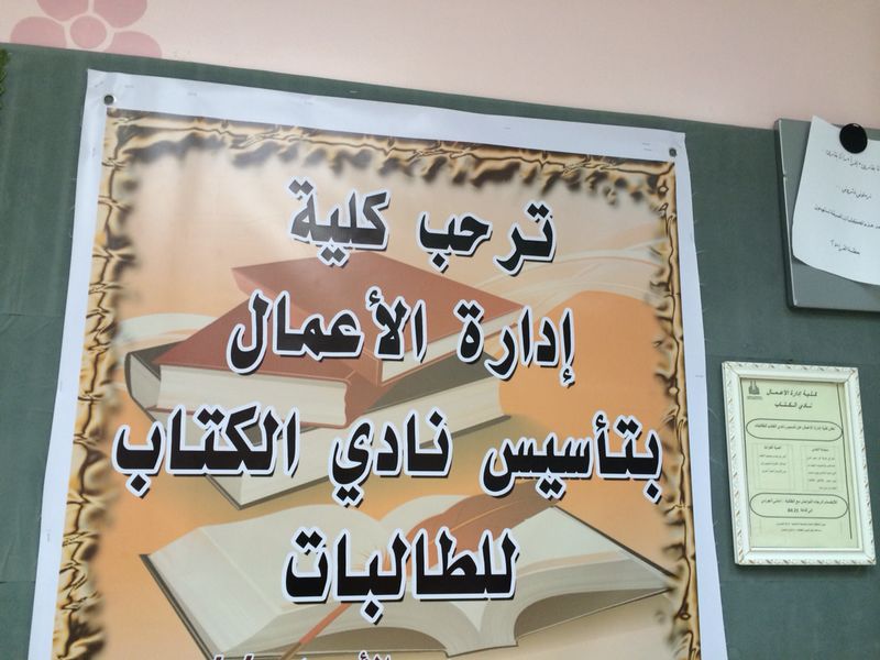 محمد هلال : أسست كلية إدارة الأعمال - طالبات - وحدةً خاصة لنادي الكتاب، وذلك بهدف التشجيع على المطالعة والاهتمام بتنمية الثقافة والمعلومات العامة لدى الطالبات وتوثيق صلات الصداقة والتعاون بينهن.