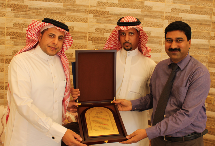 تحت رعاية الدكتور / ناصر بن سعد القحطاني ، عميد كلية إدارة الأعمال وحضور الدكتور / علي بن صالح الزهراني ، وكيل الكلية للشؤون التعليمية والأكاديمية ، ومدير الإدارة الاستاذ محمد عبد المطلوب حمدان ، أقيم حفل تكريم لمدير الإدارة السابق مدير إدارة المتابعة بالجامعة حاليا الاستاذ عبد العزيز بن عبدالله العجيان ، وأعضاء هيئة التدريس المنتهية عقودهم مع الجامعة وكذلك ختام الأنشطة الطلابية للعام الأكاديمي 1435/1436هـ في يوم اجتماعي مفتوح لدعم روح الوئام والتآلف بين منسوبي الكلية مما ينعكس على أوجه التعاون في العمل وسرعة إنجازه بالإيجاب.