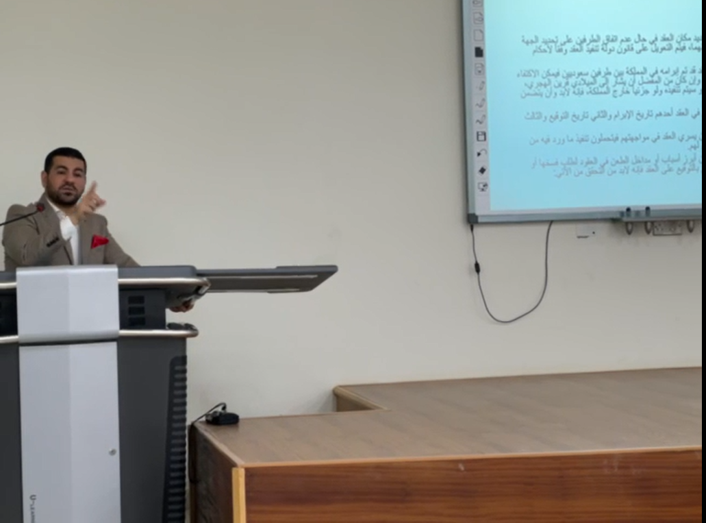 نظمت لجنة الأنشطة الطلابية بكلية إدارة الأعمال بالخرج بالتعاون مع نادي عدالة بقسم القانون، يوم الاثنين الموافق 28/3/1444هـ في تمام الساعة العاشرة دورة بعنوان( صياغة العقود) قدمها، الأستاذ/ تامر محمد أنور المقدم، المحاضر بقسم القانون والمستشار القانوني بالجامعة، مستهدفة طلاب قسم القانون وغيرهم من المهتمين بتنمية مهاراتهم في مجال صياغة العقود بطريقة رصينة محترفة تعمل على حفظ حقوق الجميع وصيانتها، والدورة غلب عليها الطابع التطبيقي من واقع الممارسات العملية واستعراض ما يذخر به العمل القانوني في هذا المجال، فتناولت الدورة تعريف الصياغة وأصولها السليمة وأثرها على تفسير العقود للحد من التنازع بشأنها إذا صيغت بطريقة غير منضبطة، كما استعرضت العوامل التي تساعد على حسن الصياغة، متضمنة كذلك المحاذير اللغوية التي ينبغي تجنبها والأخطاء الشائعة في صياغة العقود وكيفية تداركها، وتم عرض أمثلة لتلك الأخطاء وسُبل تصحيحها، إلى أن انتهت الدورة بعرض نماذج لعقود مختلفة والتعامل معها عن كثب وبيان هيكلها الشكلي وتكوينها الموضوعي؛ هذا وقد غلب على الدورة الطابع الحماسي التفاعلي المثمر من جانب الحضور والمحاضر، واختتمت الدورة بتوجيه الشكر للقائمين عليها وللحضور.