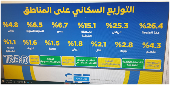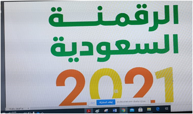 نظمت لجنة الأنشطة الطلابية بكلية إدارة الأعمال يوم الخميس الموافق 11/ 3/2021م ورشة عمل بعنوان (الرقمنة السعودية) قدمها سعادة الأستاذ أنس حمد النيل المحاضر بالكلية، تناولت الورشة السعودية في أرقام من حيث الخدمات الحكومية المقدمة والأجهزة المستخدمة في الإنترنت ومنصات التواصل الاجتماعي والتجارة الإلكترونية والإعلام والرقمنة السعودية عالميا، كما تناولت الورشة إحصائية بعدد سكان المملكة العربية السعودية من الذكور والإناث ونسبة المتعلمين والمتعلمات، وتوزيع السكان والفئات العمرية لهم على المناطق ، وكذلك عدد المؤسسات الحكومية بحسب القطاعات والمنشئات الصغيرة والمتوسطة، وإجمالي العاملين في مختلف القطاعات والخدمات الرقمية الحكومية، وتحليل لمستوى الرقمنة السعودية عالميا.