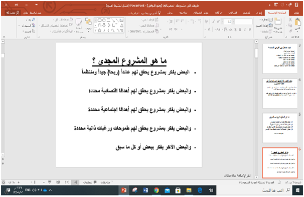 نظمت لجنة الأنشطة الطلابية بكلية إدارة الأعمال بالخرج اليوم الاثنين 2/8/1442هـ الموافق 15/3/2021م ورشة عمل بعنوان " طريقك الى مشروعك الصغير" قدمها سعادة الدكتور احمد حسين خطايبة عبر منصة البلاك بورد. وتناولت الورشة عدد من المحاور تتمثل في مصادر فكرة المشروع، وتحويل الأفكار إلى فرص استثمارية، والمفاضلة بين الفرص المتاحة، ومراحل تنفيذ المشروع، والخيارات المطروحة لتنفيذ المشروع، وكذلك المهام المطلوبة لتنفيذ المشروع، والإجراءات لبدء الإنتاج التجريبي، والأنشطة المالية والإدارية والإنتاجية المتوقعة، وخصائص صاحب المشروع الصغير، والمجالات التي يمكن للمشروع الصغير المنافسة بها، إضافة إلى التطرق إلى التسويق ومجالاته والجهود التي يقوم عليها والعملاء المستهدفين، وكيفية منافسة المنتجات الأخرى بالسوق ، والطرق المتبعة في تسعير المنتجات، وكيفية الحصول على التمويل اللازم للمشروع وأخيرا التحليل المالي للمشروع.