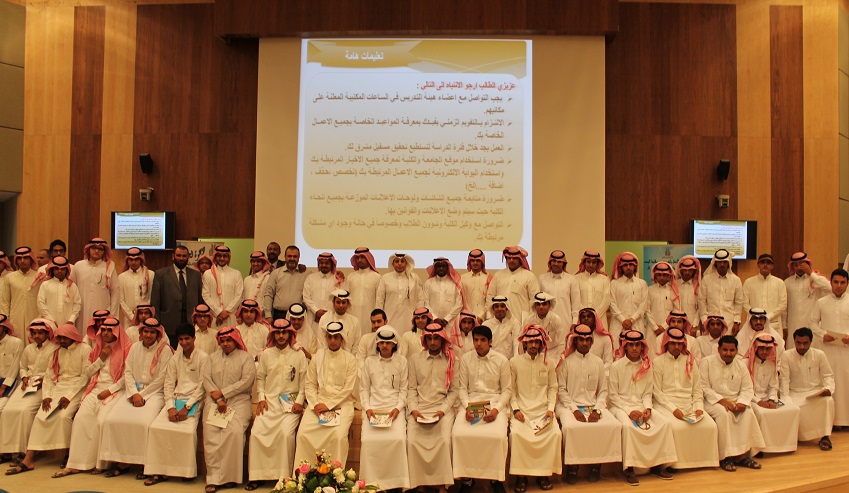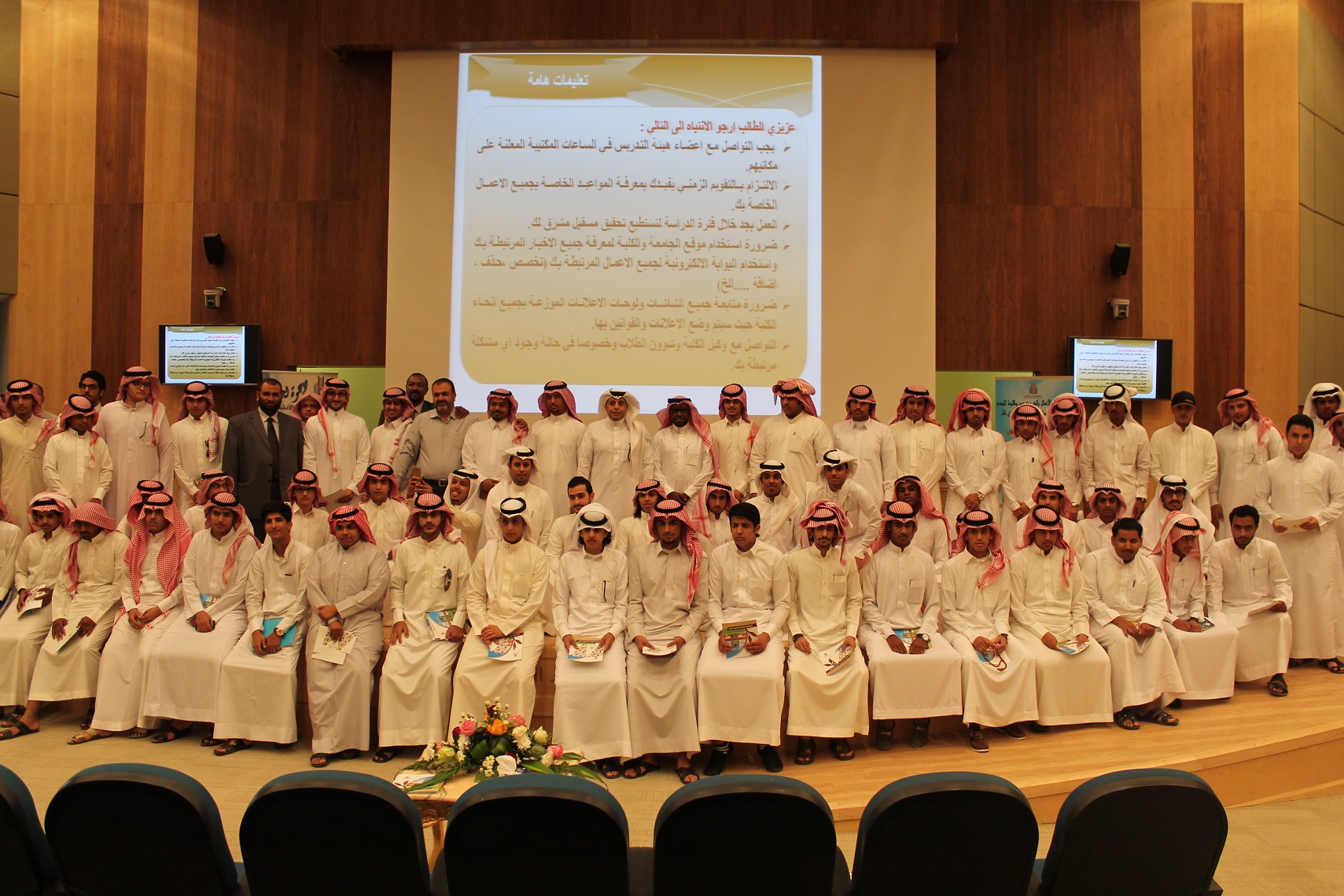 كما تفضل سعادة وكيل الكلية الدكتور علي الزهراني ، بالشرح المستفيض لكل ما يخص الكلية والحياة الجامعية للطالب مروراً باللوائح والأنظمة وتعريف الطلاب بأقسام الكلية وبطريقة حساب المعدل الأكاديمي وذلك لتهيئة الطلاب للحياة الجامعية الجديدة التي تختلف عن جميع مراحل التعليم ما قبل الجامعة .