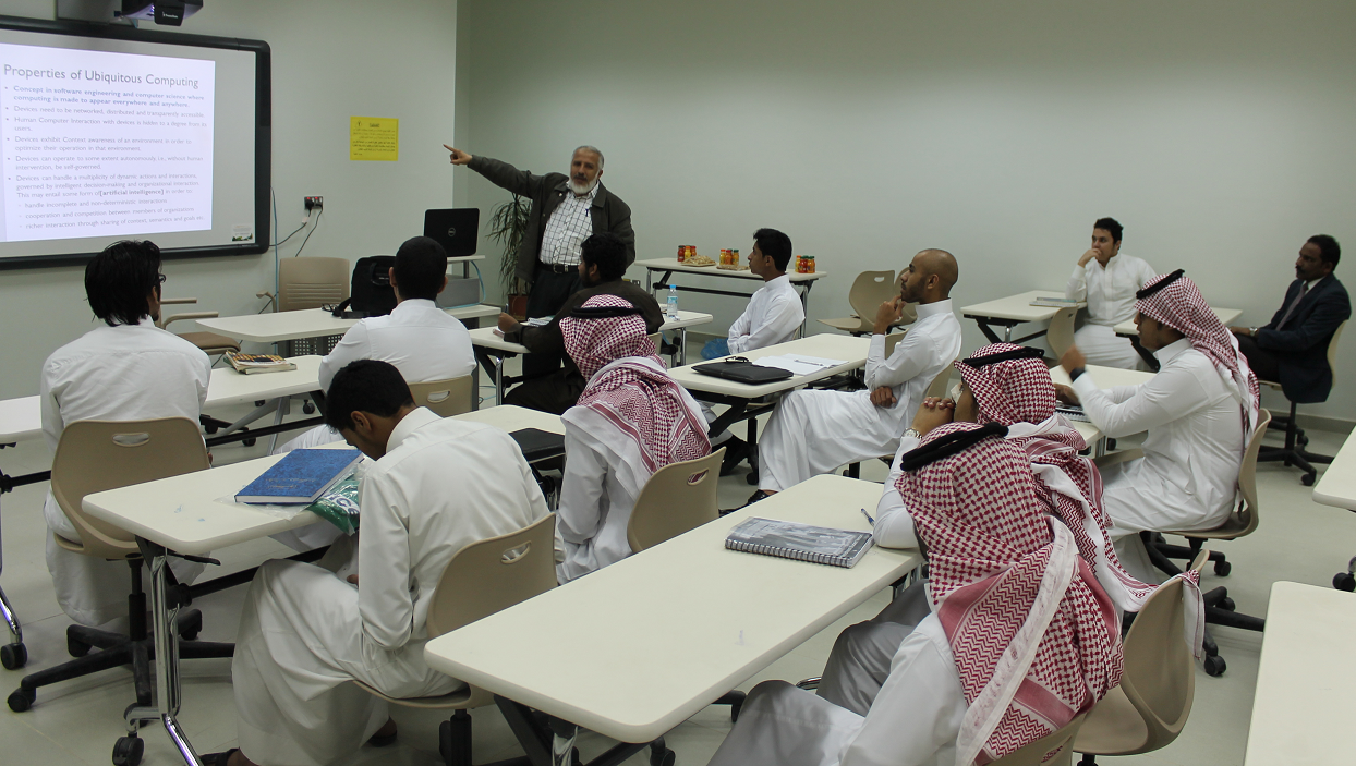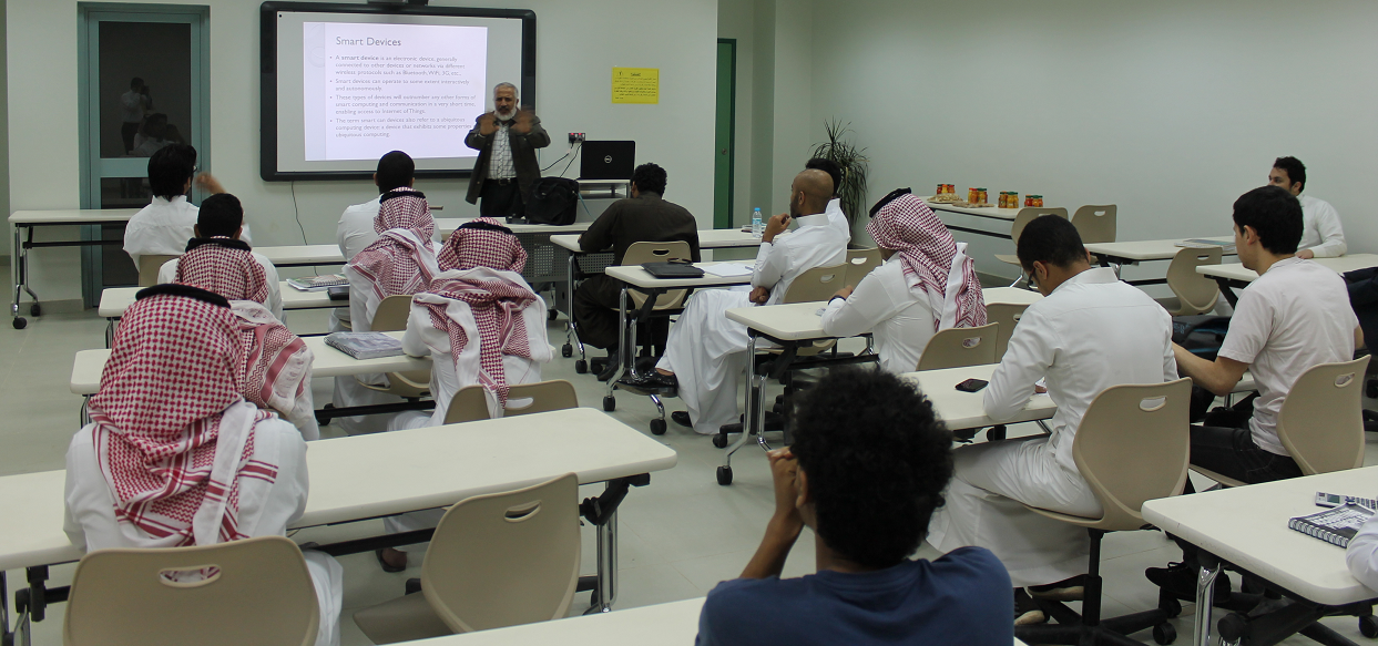 أقامت لجنة الأنشطة الطلابية بكلية إدارة الأعمال ورشة عمل؟؟؟ برعاية عميد الكلية سعادة الدكتور ناصر بن سعد القحطاني ، بعنوان (Use of Mobile Technologies in Teaching & Training)، وقد قدم الورشة سعادة الدكتور فتحي بشير، الأستاذ المساعد بقسم نظم المعلومات الإدارية . حيث تناولت الورشة التعريف بآليات استخدام الهواتف المحمولة والأجهزة الذكية في التعليم والتدريب ، باعتبارها وسائل تعليمية حديثة كالحاسب الآلي ووسائل التكنولوجيا الأخرى ببرامجها ووظائفها المختلفة في مجال التعليم كما أنها تحفز علي اكتشاف المواهب الجديدة وتنمية القدرات العقلية في مختلف المواد . كما تحدث سعادته عن آلية تنظيم الاستفادة من الشبكة العنكبوتية باعتبارها نافذه جديده تساعد علي إمكانية مشاركة الطلاب في النشاطات الدراسية و تبادل المعلومات . مشيرا إلى أنه وفق أحدث الدراسات فإن المستوى الأكاديمي التحصيلي والعلمي للطلاب قد يزيد بمعدل50% عن المعتاد باستخدام التكنولوجيا في التعليم .