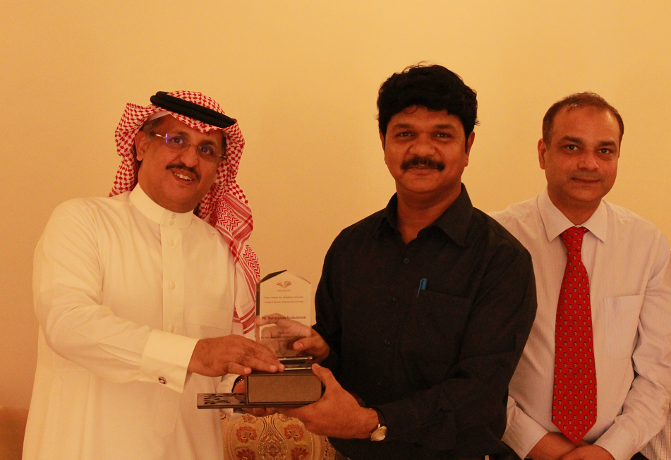 تحت رعاية الدكتور / ناصر بن سعد القحطاني عميد كلية إدارة الأعمال والدكتور / علي بن صالح الزهراني ، وكيل الكلية للشؤون التعليمية والاكاديمية ، و مدير الادارة الاستاذ محمد عبد المطلوب حمدان ، أقيم حفل ختام الأنشطة الطلابية والذي تضمن تكريمأعضاء هيئة التدريس المغادرين للكلية في لمحة وفاء من الكلية لمنسوبيها ، كما سبق الحفل تسليم بعض الجوائز لأبناء الكلية الرياضيين المشاركين في المنافسات والمسابقات التي أقيمت على مدار العام .
