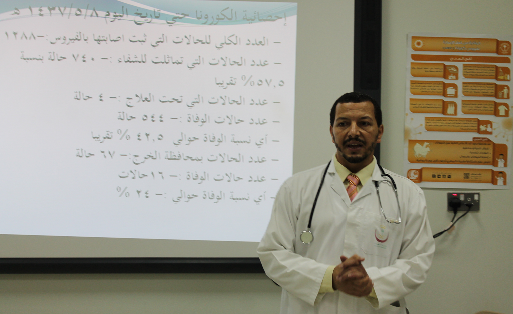 حيث حرص الدكتور فؤاد على تعريف الحاضرين بماهية الفيروس الجديد ، باعتبار أنه فيروس نادر وغامض من عائلة " الكورونا فيروس " ، ثم تحدث عن أعراض الإصابة بالفيروس حيث تبدأ أعراض الإصابة بهذا الفيروس بأعراض بسيطة كأعراض الأنفلونزا، حيث يشعر المريض بالاحتقان في الحلق والسعال، وارتفاع في درجة الحرارة وضيق في التنفس وصداع، قد يتماثل بعدها للشفاء. وربما تتطور الأعراض إلى التهاب حاد في الرئة، بسبب تلف الحويصلات الهوائية وتورم أنسجة الرئة، أو إلى فشلٍ كلوي، كما قد يمنع الفيروس وصول الأكسجين إلى الدم مسبباً قصوراً في وظائف أعضاء الجسم، ما قد يؤدي إلى الوفاة في حالات معينة.
