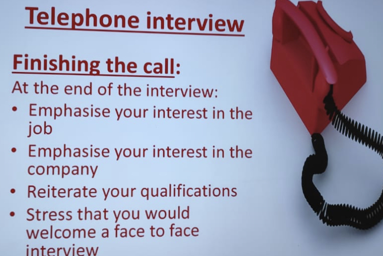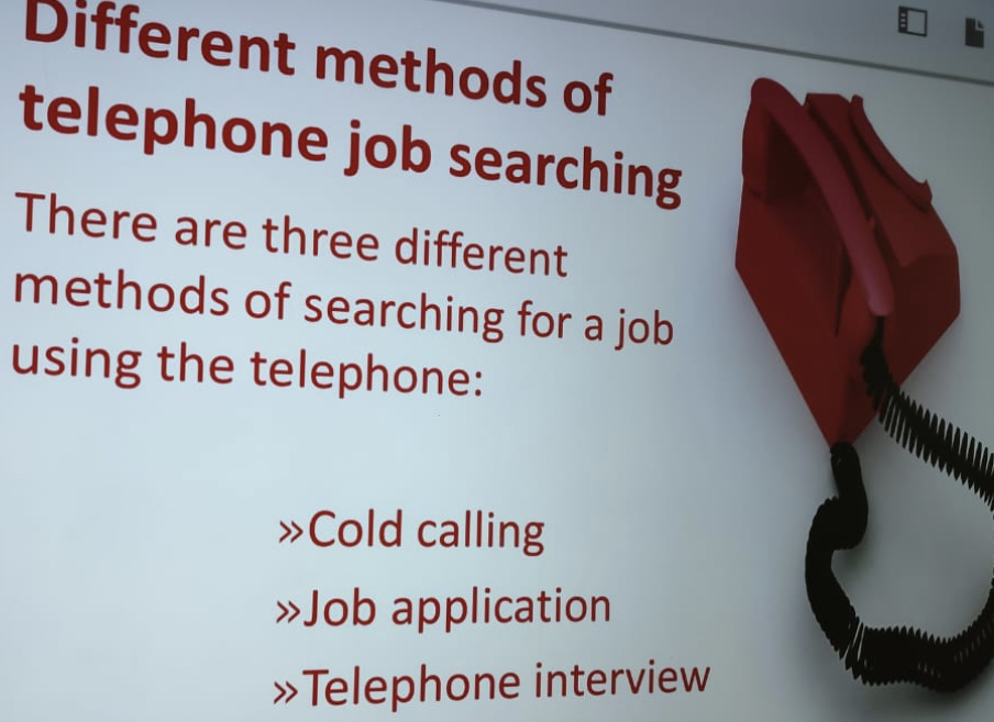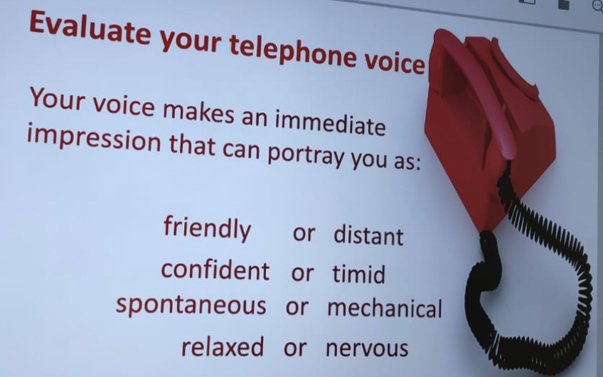 وتناولت الدورة التدريبية لمحة عامة عن المحادثة الهاتفية وأهميتها في عملية البحث عن عمل، وكذلك أهداف العرض ومنها: إظهار كيفية تقييم الصوت الهاتفي، واستخدام مهاراتك الهاتفية لثلاث طرق مختلفة للبحث عن وظيفة عبر الهاتف.