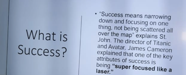 السمات الرئيسية للنجاح هي "التركيز الفائق مثل الليزر".