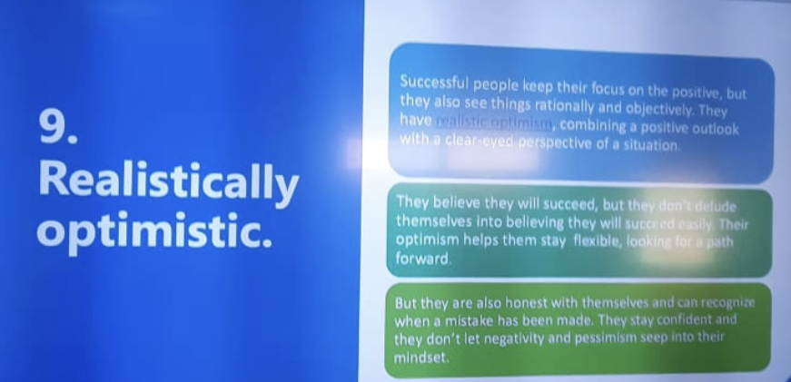 7. يحافظون على تركيزهم على الإيجابي ، لكنهم يرون الأشياء أيضًا بعقلانية وموضوعية. لديهم تفاؤل واقعي.