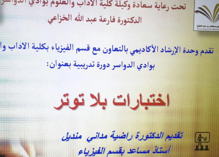 قدمت كلية الآداب والعلوم بوادي الدواسر ــ شطر الطالبات ــ ممثلة في وحدة خدمة المجتمع ورشة عمل بعنوان " خطط تطوير مفردات اللغة الإنجليزية "وذلك في يوم الثلاثاء الموافق 26/8/1443هــ