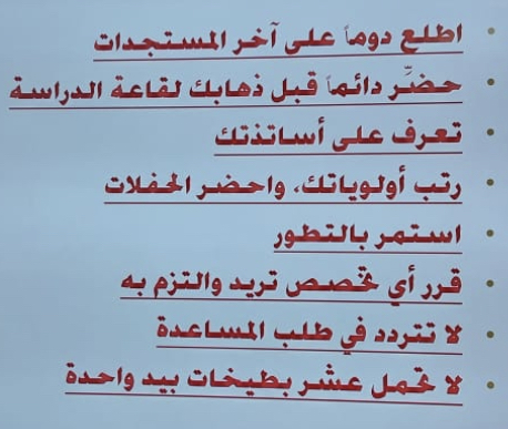 التعرف على مقومات النجاح في الحياة الجامعية .