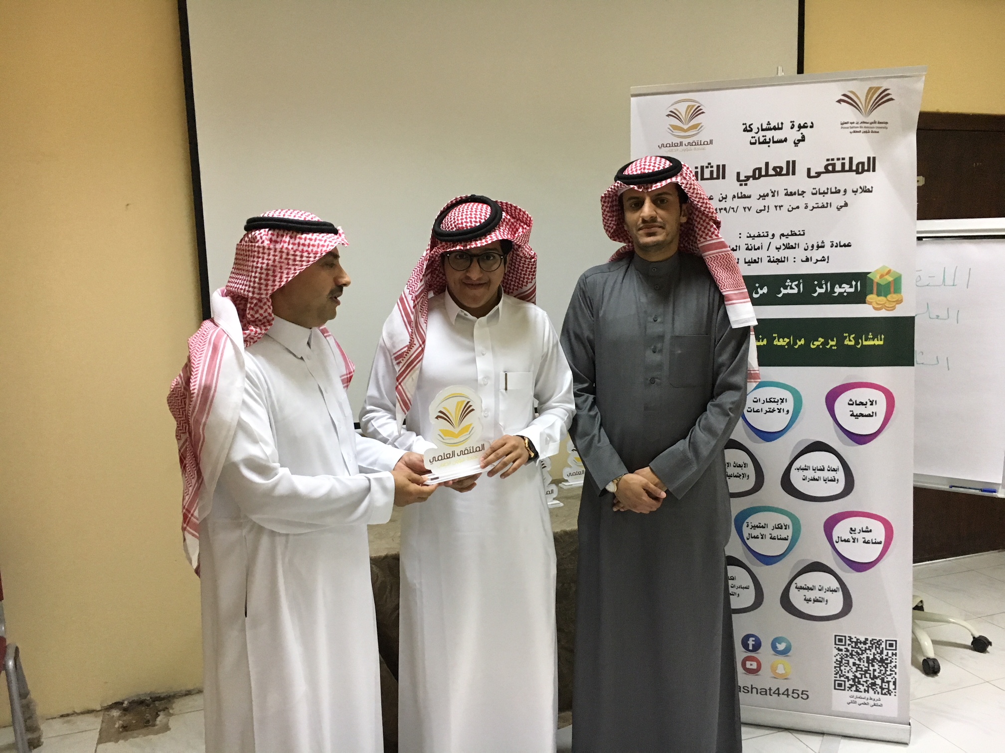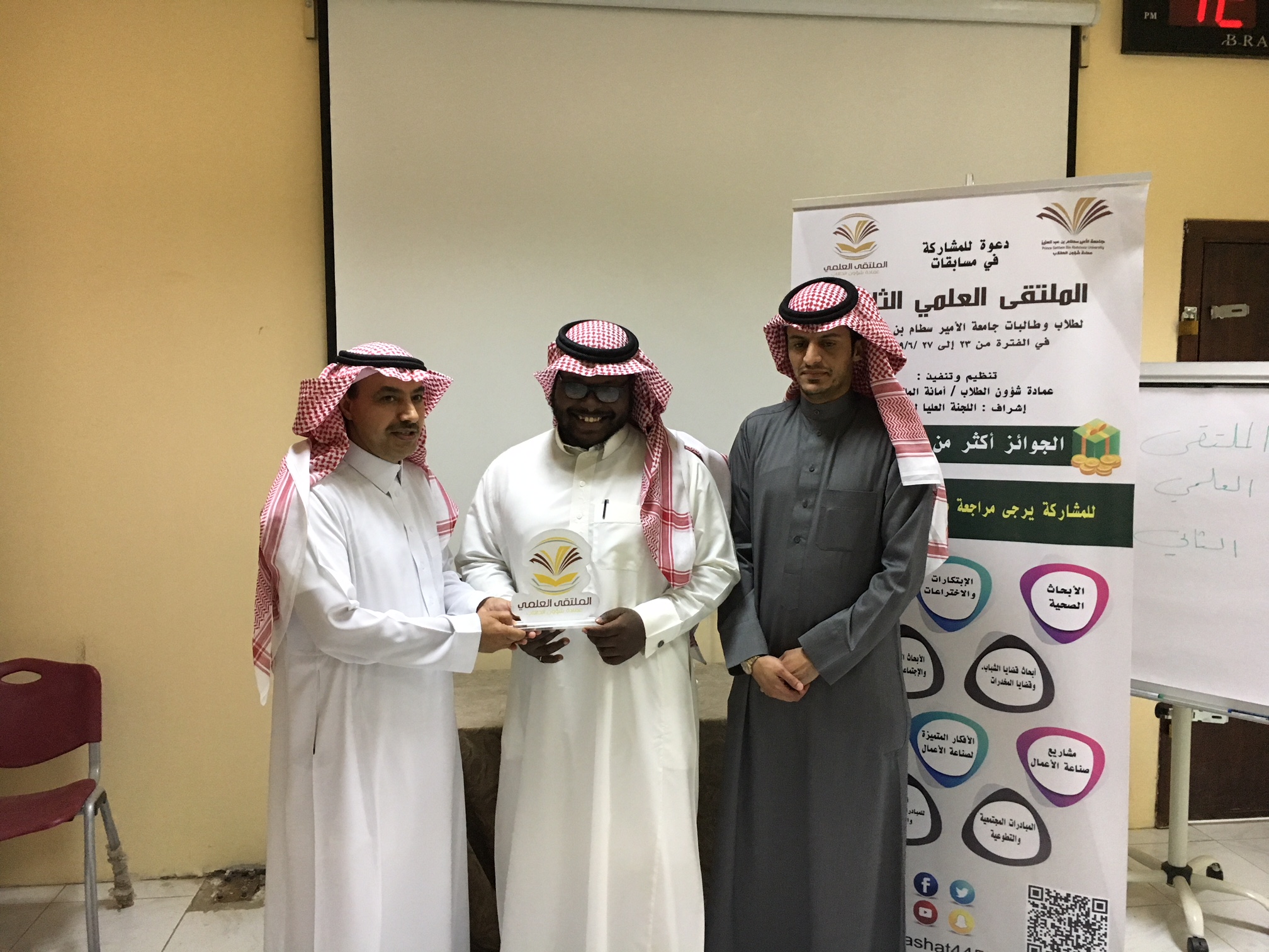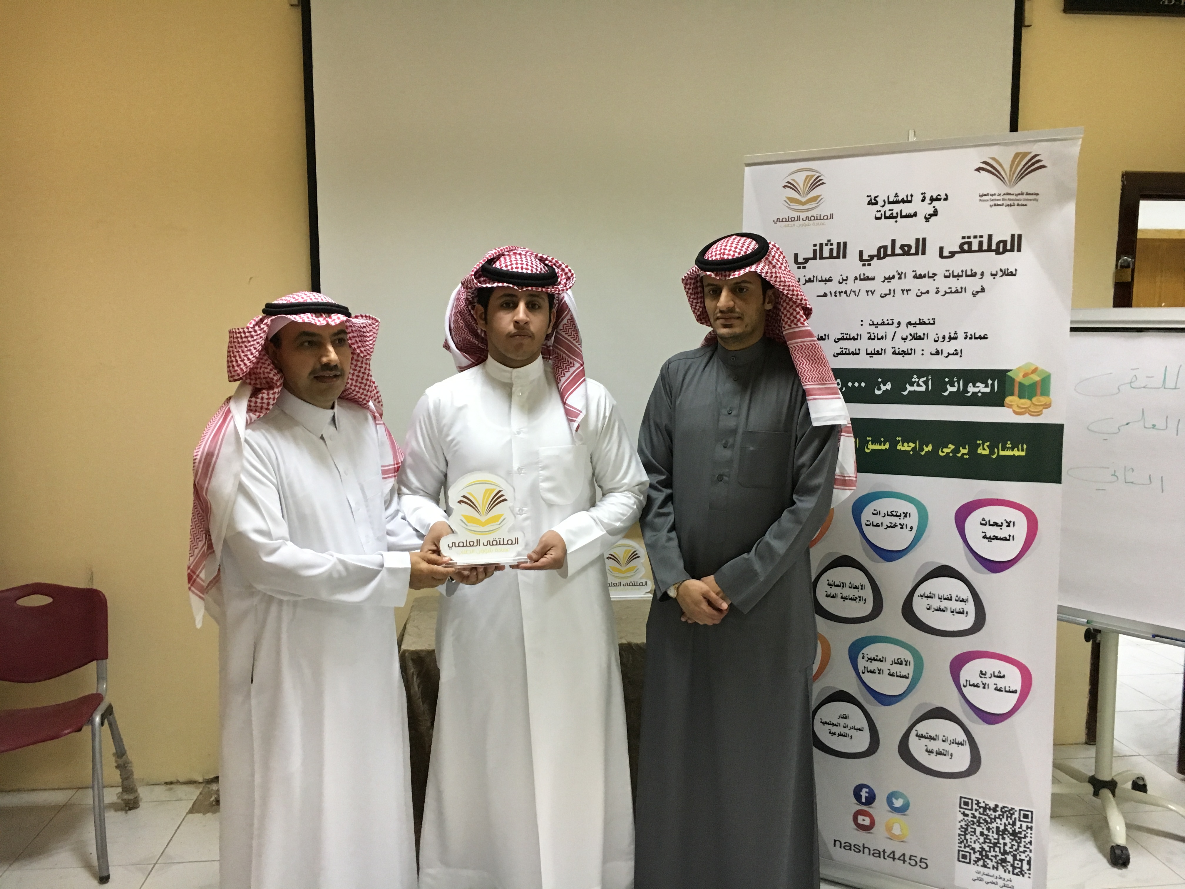 بعدها تم توزيع شهادات الشكر والتقدير و الجوائز للطلاب المشاركين وعدد من اعضاء هيئة التدريس. لإشرافهم على مشاركات الطلاب وحصل قسم علوم الحاسب الآلي على افضل قسم مشارك في ملتقى العلمي .