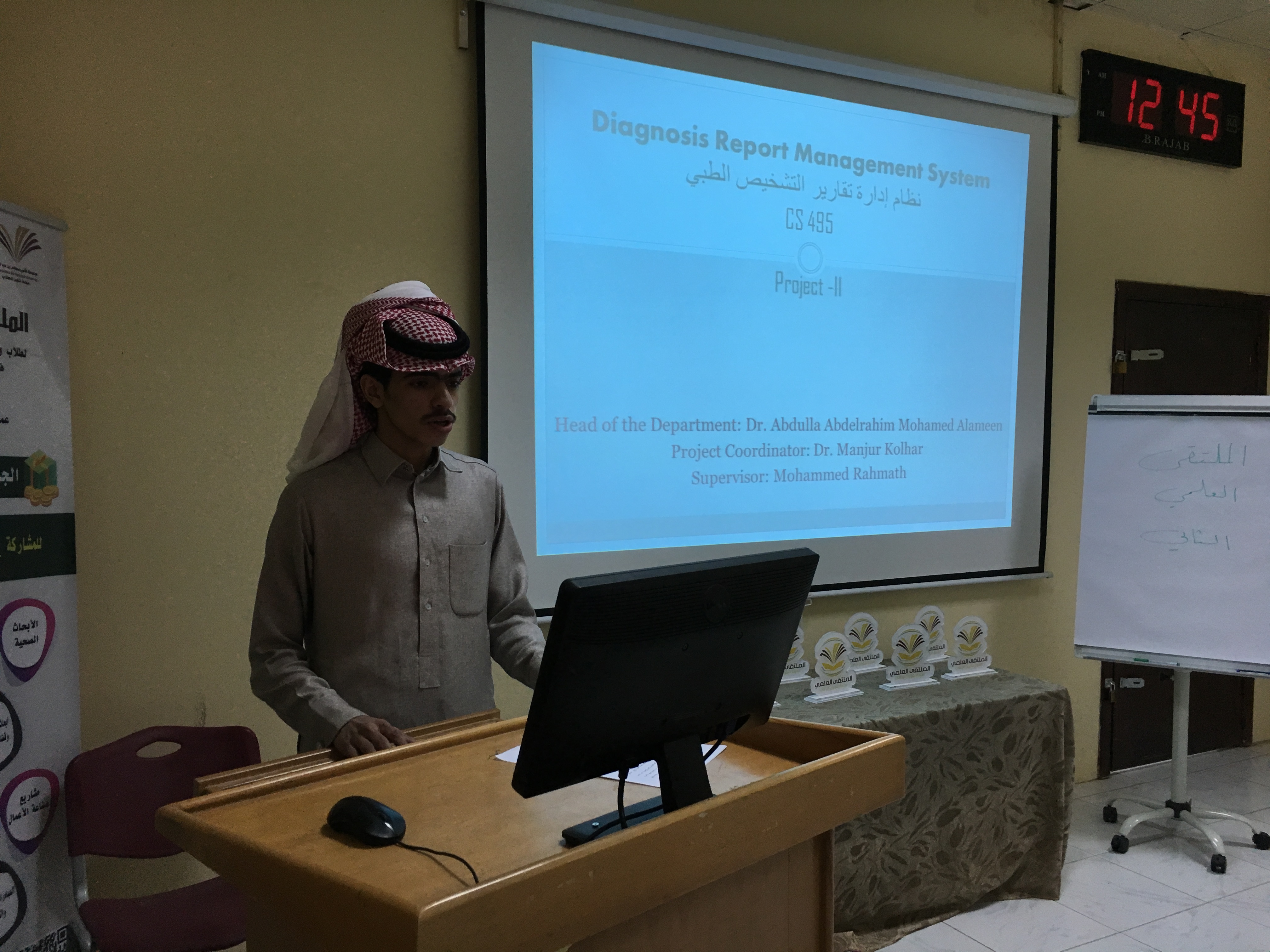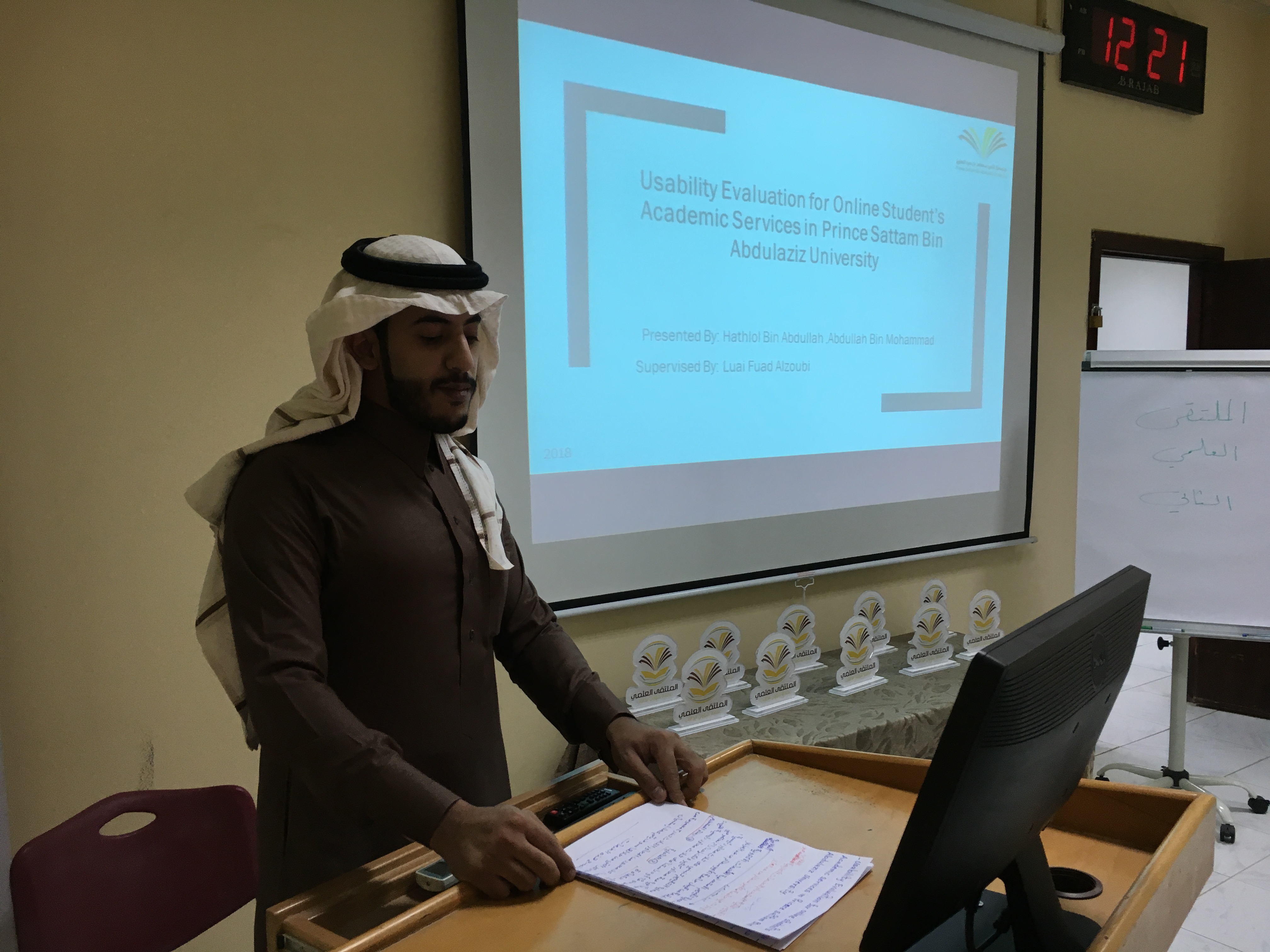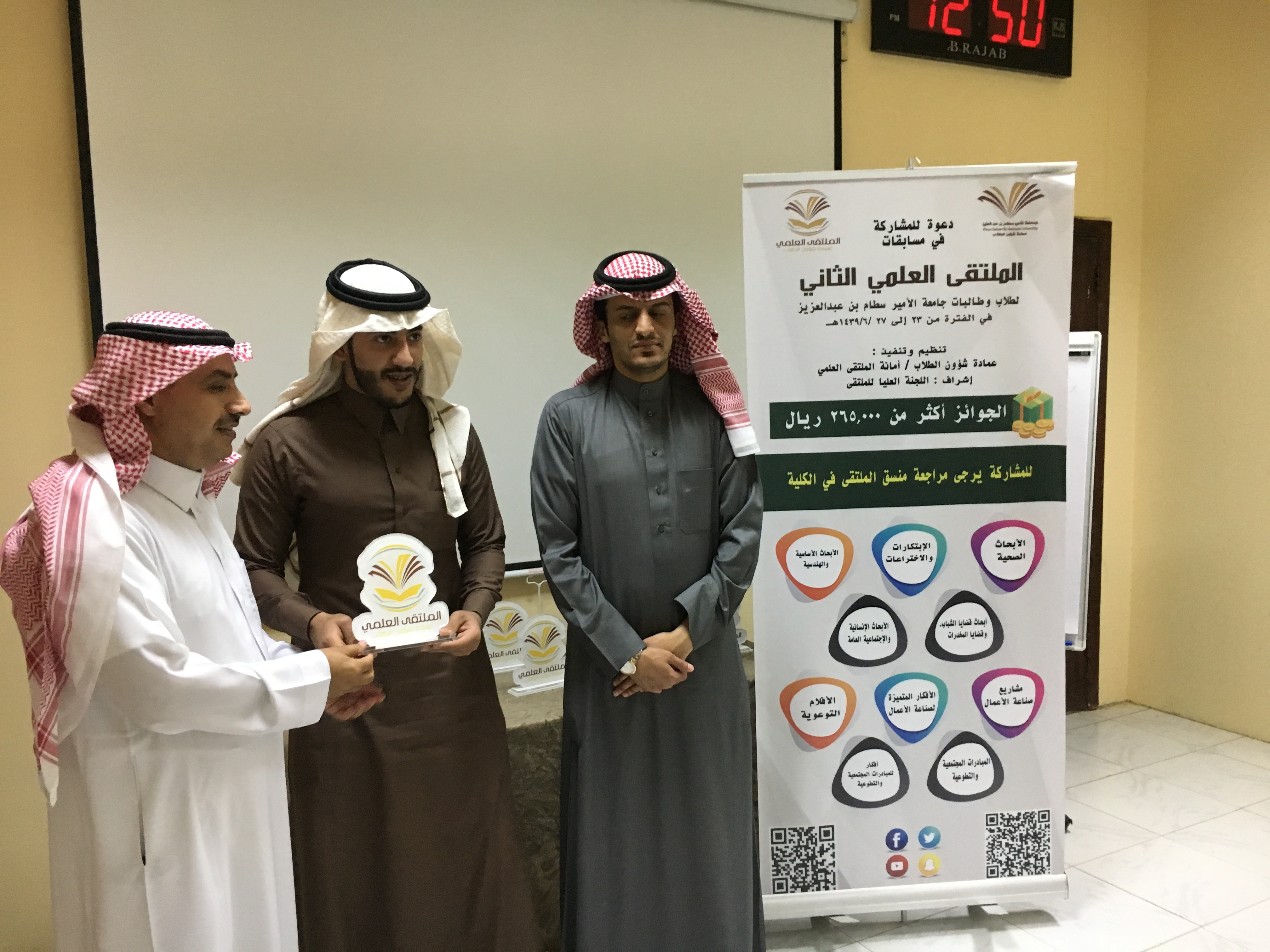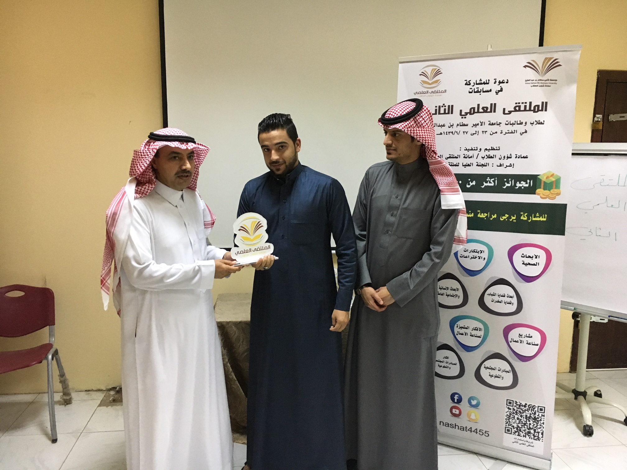 بعدها تم توزيع شهادات الشكر والتقدير و الجوائز للطلاب المشاركين وعدد من اعضاء هيئة التدريس. لإشرافهم على مشاركات الطلاب وحصل قسم علوم الحاسب الآلي على افضل قسم مشارك في ملتقى العلمي .