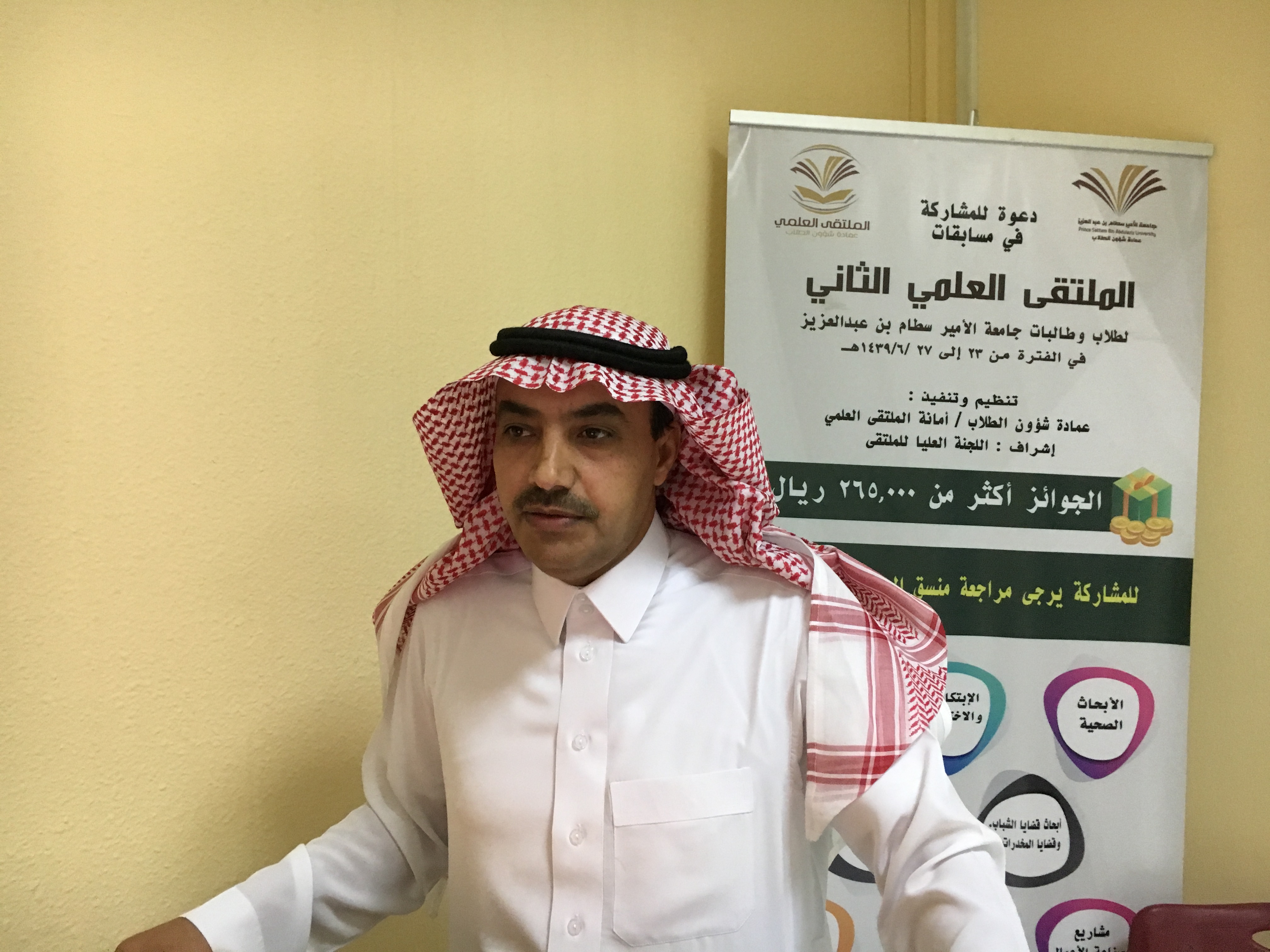 أقامة كلية الآداب والعلوم بوادي الدواسر اللقاء التحضيري للملتقى العلمي الثاني التحضيري وذلك في قاعة التدريب بالكلية بحضور عميد الكلية الدكتور سفر بن بخيت المدرع ووكلاء وعميد عمادة شؤون الطلاب الدكتور /ثلاب بن عبدالله الشكره ، ووكيل العمادة الدكتور عبدالله شتيلي وأمين الملتقى الدكتور/ عمر بن محمد دين وعضو لجنة الملتقى الدكتور محمد الابيض وعدد من اعضاء هيئة التدريس بالكلية والطلاب المشاركين .