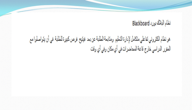 بينت فيها د/ صباح فتحي أهمية التفاعل مع المقررات المطروحة على البلاك بورد كنظام تعليمي إلكتروني عن بعد وما يقدمه نظام البلاك بورد للطالبات من خدمات ....