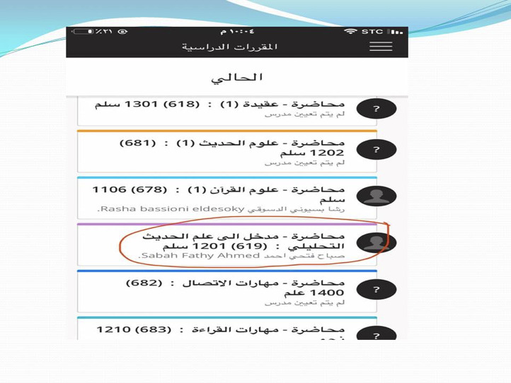 كما بينت الدكتورة بالتطبيق العملي مع الطالبات كيفية تحميل تطبيق البلاك بورد على أجهزة الهواتف الذكية وكيفية الدخول الى المقررات المطروحة والاطلاع على الإعلانات والتنبيهات في المقرر وتصفح محتوى محاضرات المقرر