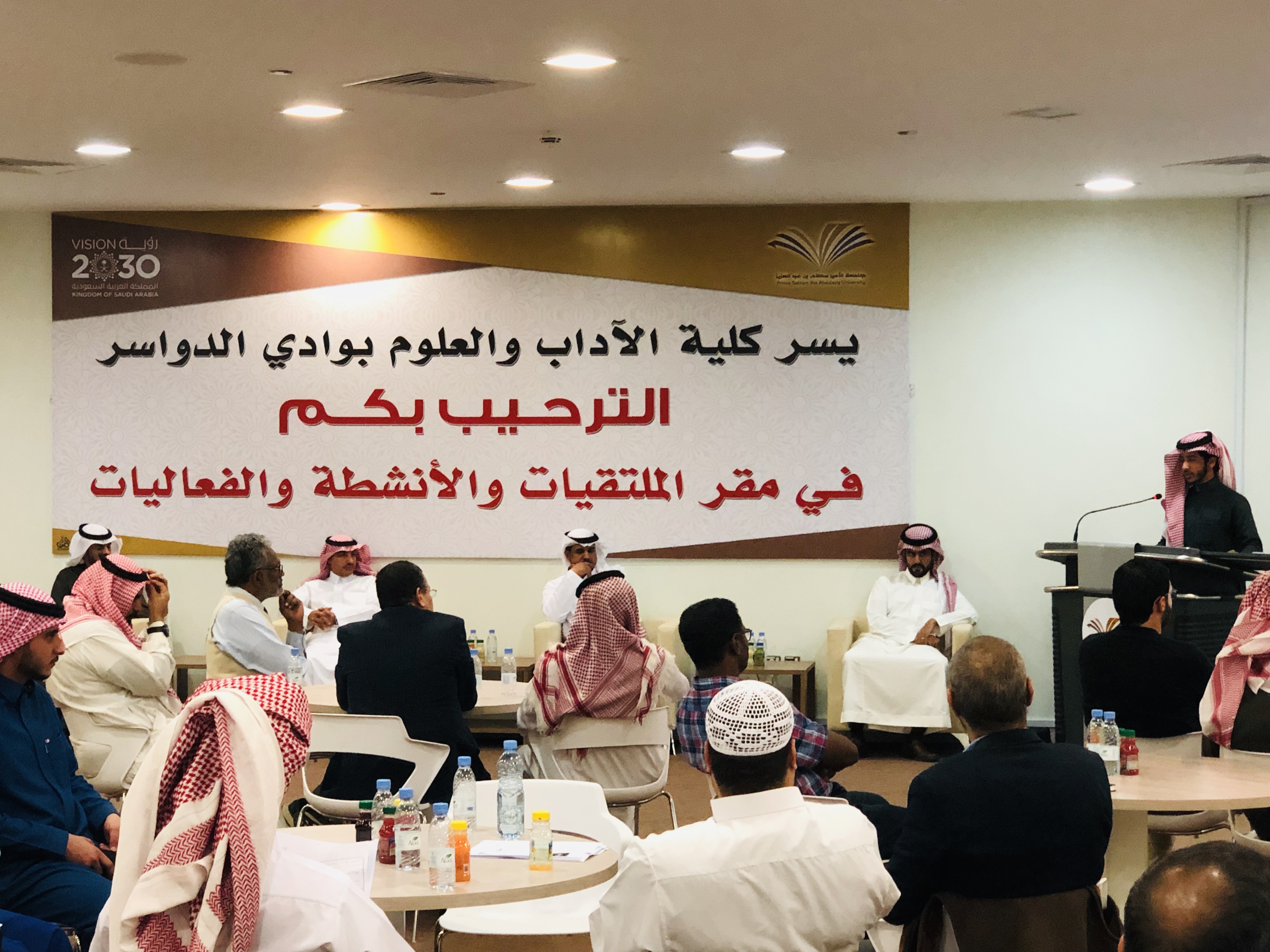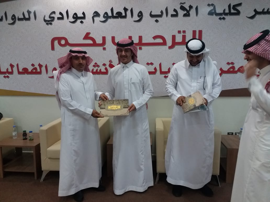 أقامت كلية الآداب والعلوم بوادي الدواسر فعاليات الملتقى التحضيري للملتقى العلمي الثالث لطلاب بحضور عميد عمادة شؤون الطلاب بجامعة الأمير سطام بن عبدالعزيز الدكتور ثلاب بن عبدالله الشكرة ، يرافقه الدكتور عبدالله بن سعود الشتيلي وكيل العمادة للخدمات الطلابية والإسكان ، الدكتور خالد بن ناصر العاصم وكيل العمادة لشؤون الفنية ، الأستاذ عمر بن عثمان العبدالله مدير ادارة العمادة وأمين الملتقى العلمي الثالث .