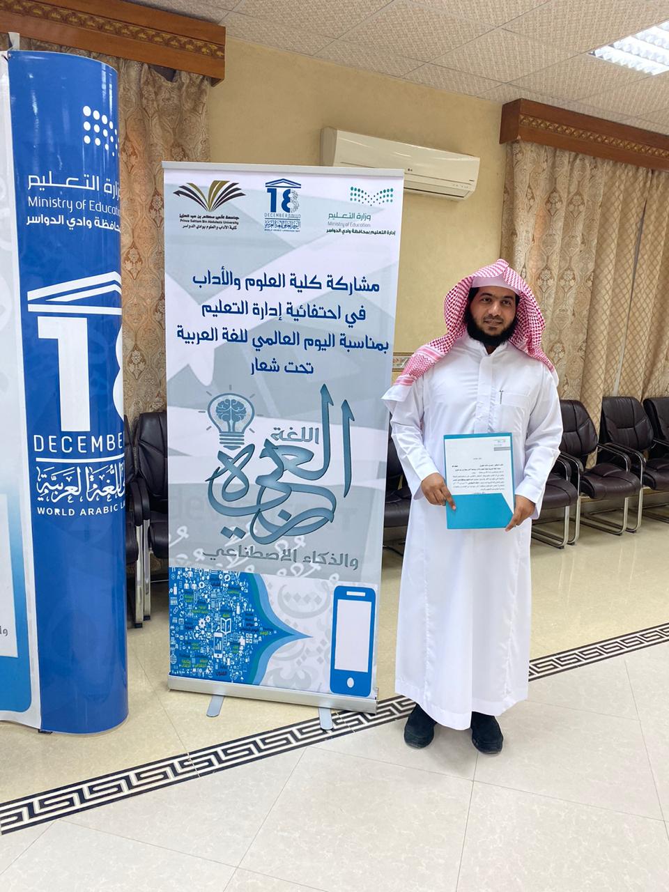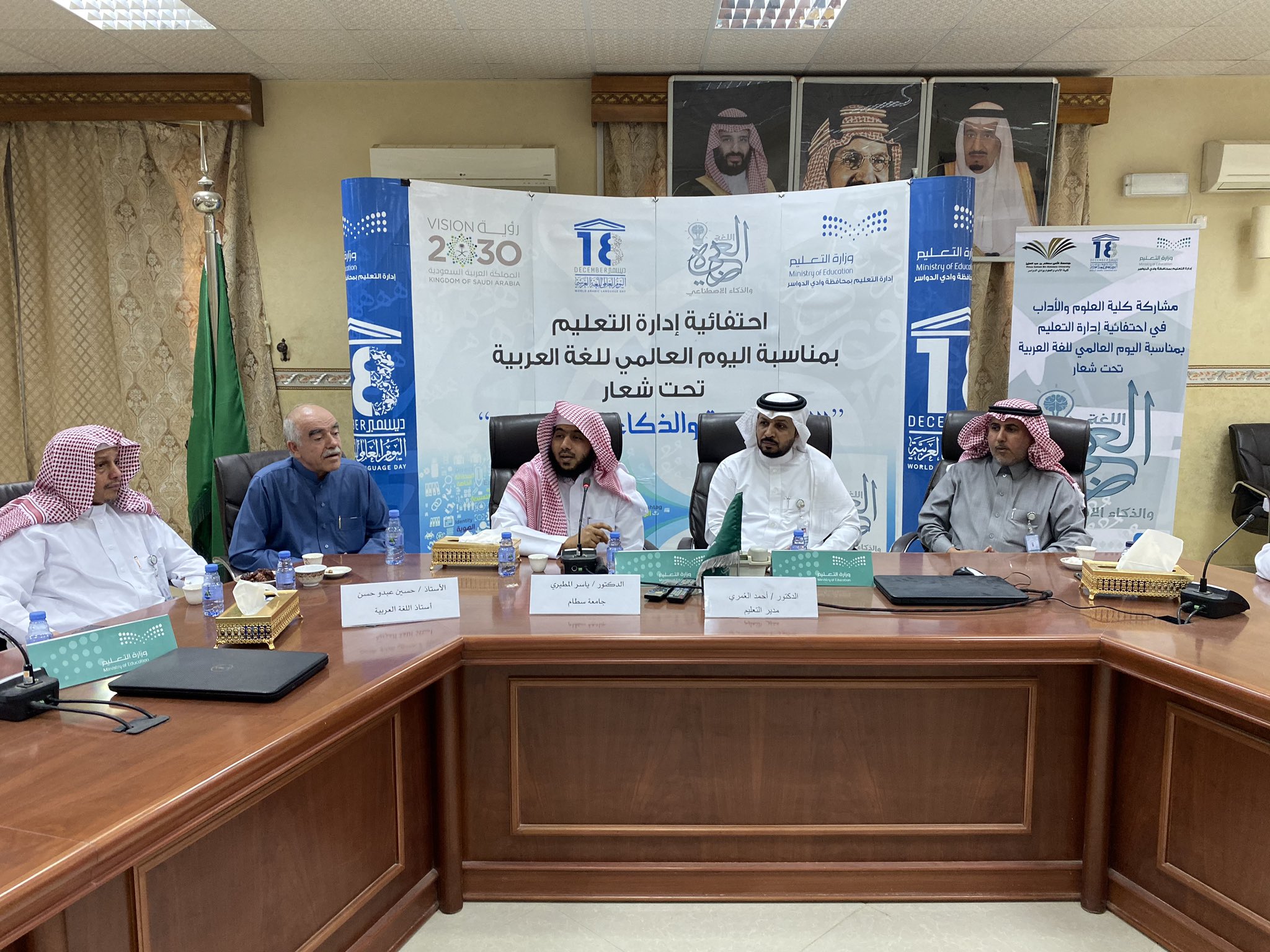 احتفت إدارة تعليم وادي الدواسر باليوم العالمي للغة العربية لعام ٢٠١٩ م تحت شعار ( اللغة العربية والذكاء الاصطناعي ) ممثلة بقسم الإشراف التربوي وبالشراكة مع كلية العلوم والآداب بجامعة الأمير سطام بن عبدالعزيز ، وقال مدير التعليم بوادي الدواسر الدكتور أحمد العُمري إن الاحتفاء باللغة العربية يحتم التفكير بالواجب على الجميع تجاه اللغة العربية، “ودورنا عظيم في سبيل ترسيخ حب اللغة العربية في نفوس أبنائنا، وبيان قيمة لغتنا العريقة، وأنها كانت لغة الحضارة والإنسانية”.