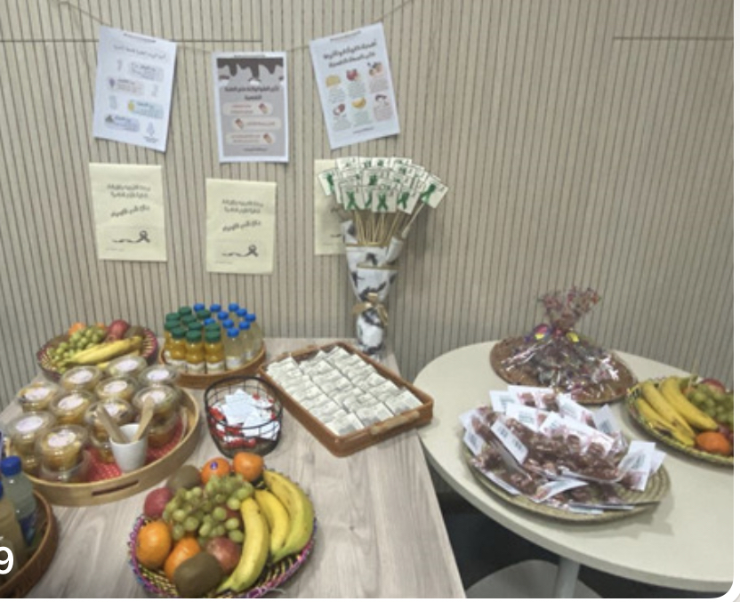 بالاهتمام بالصحة النفسية، وقسم الكيمياء مع قسم الفيزياء بقيادة الدكتورة نسيبة قام بتوزيع بعض الفواكه مع توضيح علاقتها